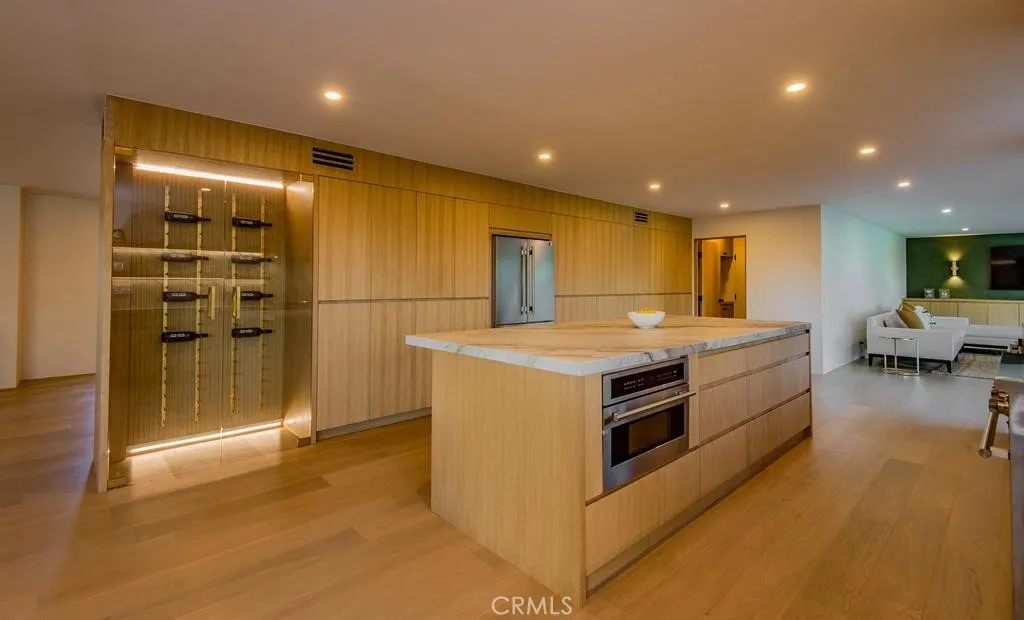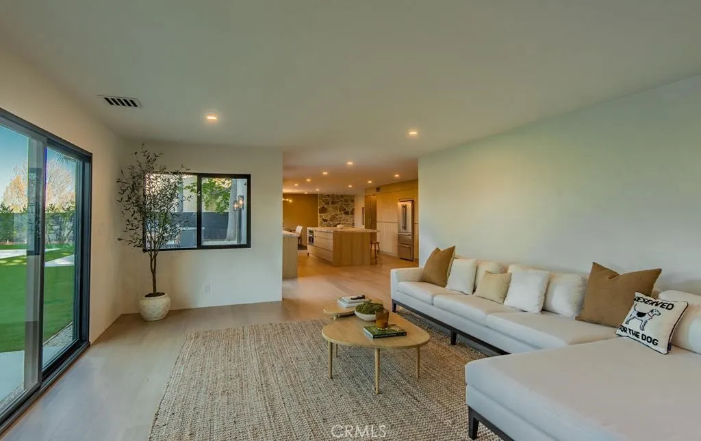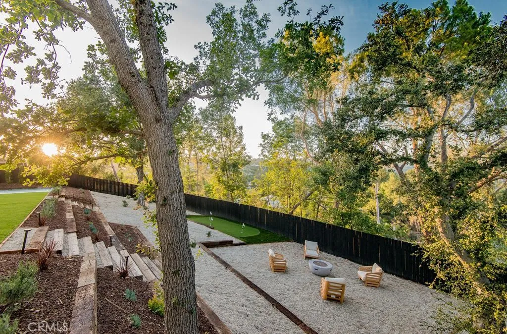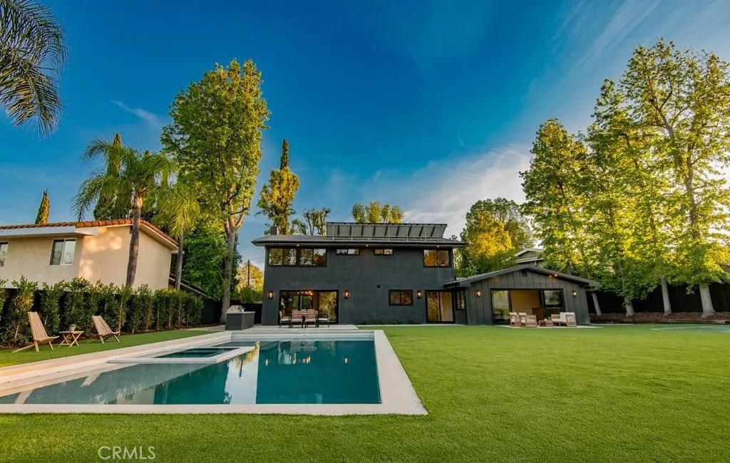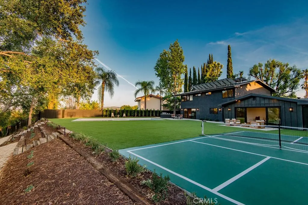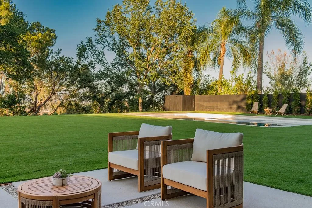 Views , Views , Views Located West of Valley Circle situated on an extremely Huge Lot with Full wrap around City & Mountain Views !! This Completely Reimagined iconic 2 Story mid-century Modern home, timeless architectural Design with modern volume, warmth, and functionality ! 5 bedroom, 4 bath boasting 3527 sqft residence honors the original spirit of the Woodland Hills west design while elevating it for contemporary living. The homes layout has been redesigned to introduce an Open floor plan living room / Great room Dining room , kitchen creating an expansive sense of scale and light rarely found in homes of this era. true indoor-outdoor living allowing the interior spaces to flow effortlessly into the landscape. Throughout the home, custom oak cabinetry has been meticulously designed and built in every space, offering warmth, cohesion, and exceptional storage without compromising clean architectural lines. The dining room flows seamlessly with the Living room and kitchen making it ideal for entertaining. The Massive kitchen is both sculptural and functional, featuring Forno appliances, natural Porcelain countertops, and a Custom 10ft Kitchen island that serves as the heart of the home. The residence offers true primary suite thoughtfully positioned with Full city and Mountain Views , 4 bedrooms on the Second level with the 5th bedroom in-law suite on the main level of the home to provide privacy and flexibility perfect for guests, in-laws, or work-from-home needs. Outside the property sits on 16,700 Lot size continues to impress with an impressive Modern Linear 40ft La