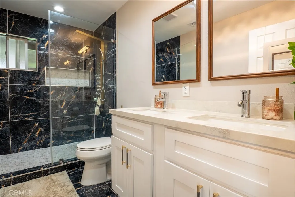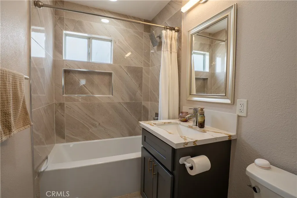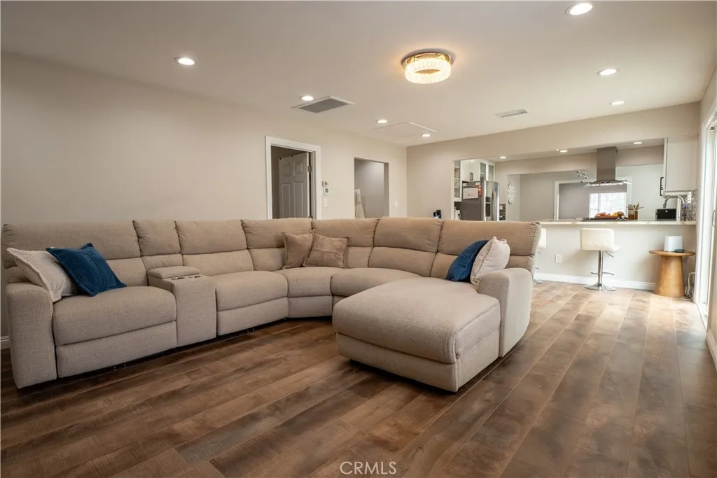 This beautiful home is an entertainers delight, ideally located in the highly desirable city of Buena Park, California. Situated on a spacious 7,204 sq ft lot on a quiet street, this property offers both comfort and convenience, with close proximity to shopping centers, schools, and easy access to the 91 and 5 freeways. The home features a 2-car garage along with a long, private gated driveway providing ample additional parking. The front yard is clean and well-maintained, complemented by paid-off solar panels for energy efficiency. Inside, youll find well-kept laminate flooring throughout, a bright and spacious living room, kitchen, and family roomperfect for everyday living and entertaining. The kitchen boasts white shaker cabinets and elegant quartz countertops. The primary bedroom is clean and inviting, complete with a walk-in closet, along with two additional bedrooms. The home also includes a separate laundry room for added convenience. Enjoy modern upgrades such as recessed lighting, recently remodeled bathrooms, and a newer central heating and air conditioning system. The backyard is perfect for gatherings, featuring a covered patio and a grassy area ideal for relaxing or entertaining family and friends.