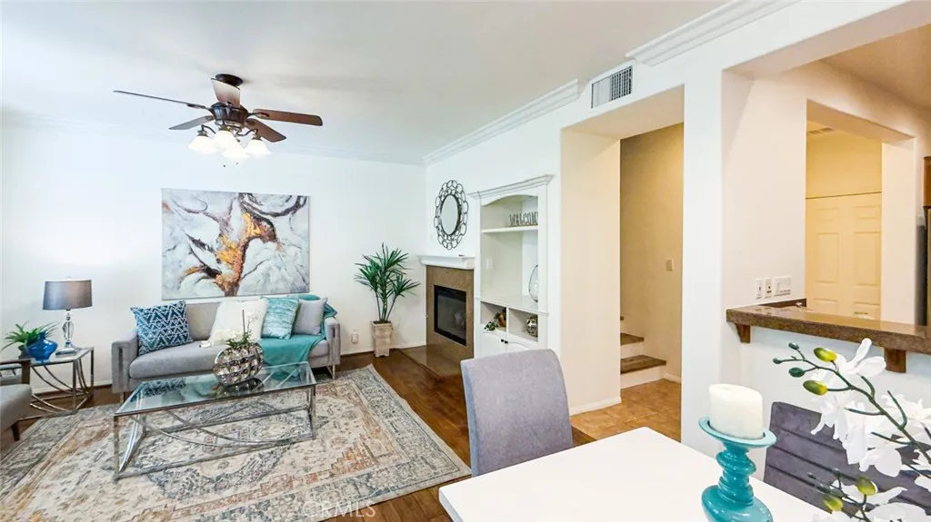This stunning 2 bedroom, 2.5 bath townhome in highly sought-after Ladera Ranch offers the perfect blend of comfort and style. Step inside to a warm, inviting ambiance with upgraded wood flooring flowing through spacious living and dining areas, a cozy fireplace, and a built-in media center ideal for relaxing or entertaining. The open-concept kitchen features granite countertops, stainless steel appliances, abundant cabinetry, and generous prep and storage space. Upstairs, the expansive primary suite is a peaceful retreat with a walk-in closet and spa-like ensuite bath with dual vanities and an enclosed oval tub/shower. The secondary bedroom also includes its own ensuite bath, creating a true dual-primary layout, plus a convenient upstairs laundry room and additional cabinet storage. Upgrades include fresh interior paint, new vinyl flooring upstairs and on the stairs, upgraded tile in the kitchen and bathrooms, recessed lighting, plantation shutters, direct 2 car garage access, and a spacious patio perfect for outdoor living. Washer, dryer, and refrigerator are included. Enjoy resort-style Ladera Ranch living with top rated schools, pools and spas, skate and water parks, sports courts, scenic trails, clubhouses, parks, and year round community events plus high speed internet included in the HOA.