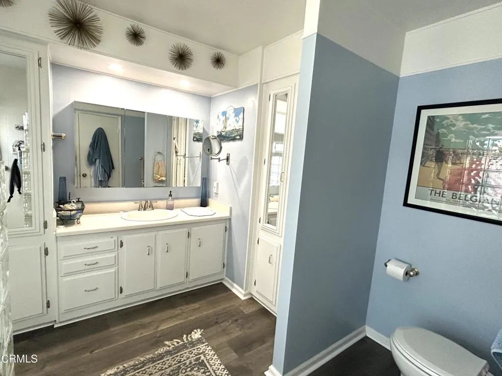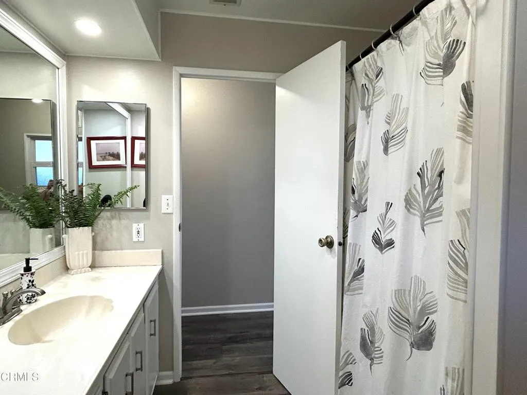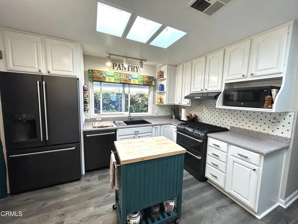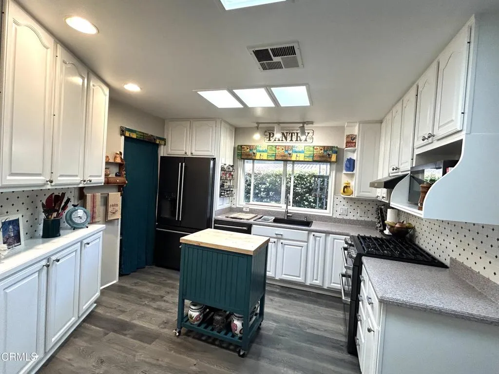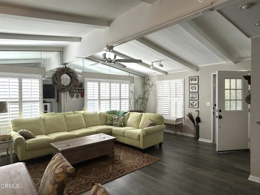 Welcome to this beautifully updated home located in a desirable 55+ community, offering comfort, space, and effortless living. This spacious 2-bedroom, 2-bath residence features approximately 1,440 sq ft of thoughtfully designed living space, highlighted by new flooring, abundant natural light, and soaring ceilings in the living room enhanced by skylights above. The open-concept kitchen includes an island, perfect for cooking, gathering, and entertaining. The expansive primary suite offers a walk-in closet and an easy-access walk-in shower, while the guest bedroom and bath provide comfort and style with recessed lighting, a refinished tub and shower. Additional features include a beautifully refinished hutch in the dinning area, laminate floors throughout, dual pane windows, stylish window shutters, ceiling fans, a dedicated laundry room with folding space, and generous storage throughout. For a peace of mind, the home is seismically braced. Step outside to enjoy a low-maintenance yard with a private patio, citrus fruit trees, spacious storage shed, and a covered carport accommodating two vehicles. Located near Camino Real Park, this home combines functionality, charm, and convenience--an exceptional opportunity you won't want to miss.