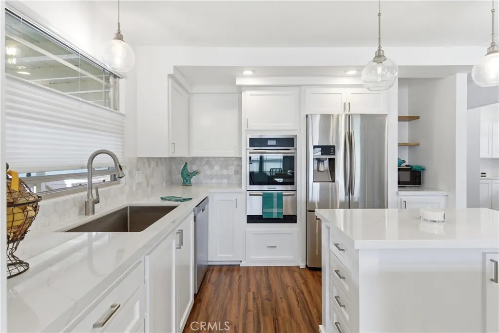 Welcome to your active 55 + dream home community located in the highly sought-after THE GROVES neighborhood in Irvine. This beautifully FULLY REMODELED 2-bedroom, 2-bathroom residence is truly a must see! Located on a premier street across from the clubhouse, and nestled within a quiet serene greenbelt, this meticulously remodeled home boasts exceptional curb appeal with a two-car garage, and beautifully landscape yard featuring water-conserving plants. Step inside and be greeted by a spacious living area, which seamlessly flows into the dining room. The kitchen is a cooks dream with new shaker cabinets, quartz countertops, marble backsplash, and stainless steel appliances. Ample cabinetry and organized drawer inserts provide plenty of storage. The primary bedroom offers mirrored sliding closet doors that lead to a newly remodeled tranquil en-suite bath featuring porcelain tile and a glass shower enclosure... Additional upgrades include: new roof, water heater, interior and exterior paint (2023). Groves upgrades include: newly asphalt streets, new pool, new front entrance patio, new gym equipment. Highlights include: lawn bowling green, putting green, dog park, community garden, laundry room, car wash, ceramic pottery room, billiards rooms, library, and dining room