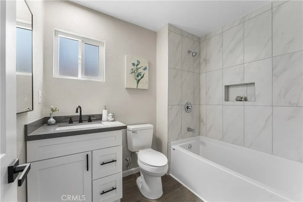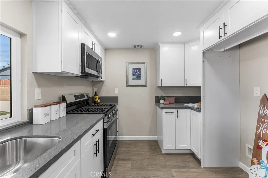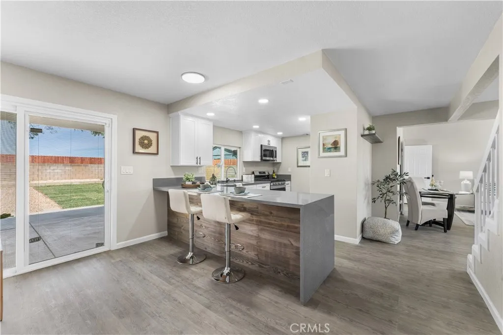 Beautifully remodeled 2-story home featuring 5 spacious bedrooms and 3 full bathrooms! This stunning property offers an open floor plan with soaring high ceilings, creating a bright and airy feel throughout. Convenient downstairs bedroom and full bathroom make it perfect for guests or multi-generational living. Family room offers a cozy fireplace and flows seamlessly into the completely updated kitchen featuring new cabinets, modern countertops, new appliances, and stylish finishes. Bathrooms have been upgraded with new vanities, new showers, and modern fixtures throughout the home. Additional upgrades include new flooring, new windows, a newer AC condenser, and contemporary touches in every room. Step outside to a covered patio and huge backyard with endless possibilities for entertaining, gatherings, or creating your dream outdoor space. Move-in ready home combines space, style, and comfort in one incredible package!