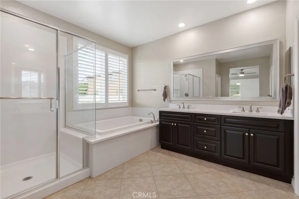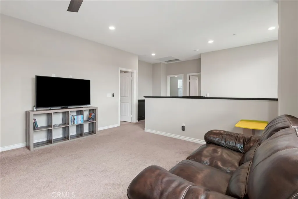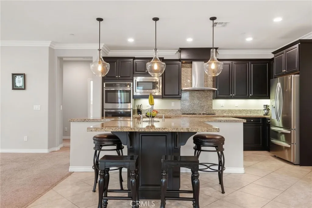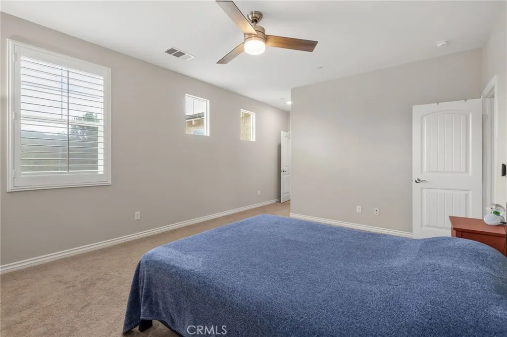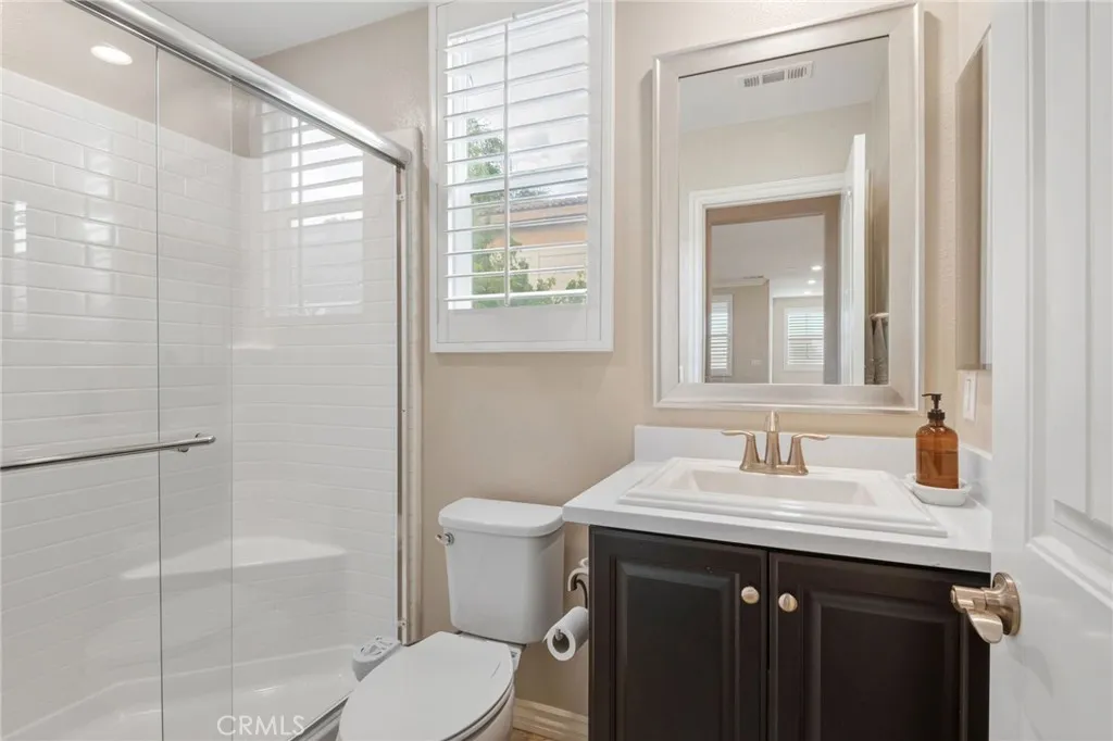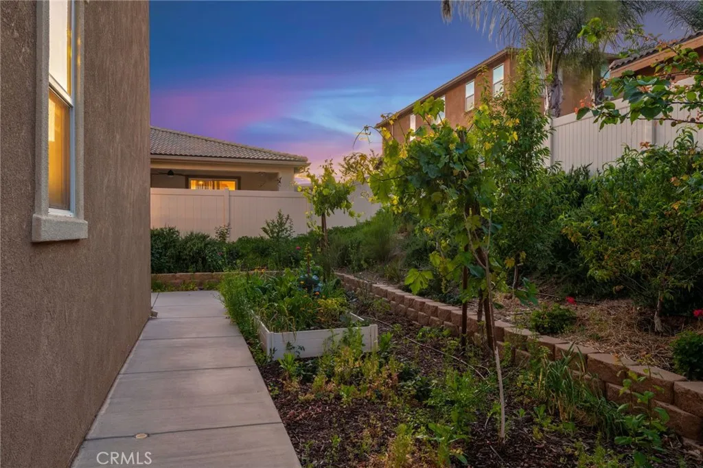 Located in the desirable Terracina community, this home is tucked away on a quiet street that gently dead-ends into a more rural setting, offering a rare blend of neighborhood living with a peaceful, country-inspired feel. Unlike typical tract surroundings, the property enjoys a unique sense of space and charm thats hard to find. A welcoming front porch sets the tone, while the backyard is designed for true California living with a covered outdoor California room complete with a fireplace, seamlessly accessed through a sliding glass doorperfect for year-round entertaining or relaxing evenings under the stars. Inside, youre greeted by wrought iron staircase rails, crown molding, and select plantation shutters, adding timeless character throughout. Thoughtfully designed for both everyday living and entertaining, the home features an extra-large kitchen island, tile flooring, and a walk-in pantry, all flowing seamlessly into the expansive family room and dining areaperfect for gatherings of any size. An optional formal living room offers flexibility and can easily serve as a home office or additional lounge space, while under-stair storage and ample linen cabinetry provide practical organization. The versatile floor plan includes a first-floor bedroom with an adjacent 3/4 bathroom, ideal for guests or multi-generational living, along with an inviting loft for added living space. The spacious primary suite features a private retreat, perfect for a sitting area, workspace, or personal escape. Additional highlights include a whole house fan, tankless water heater, and gutters, en