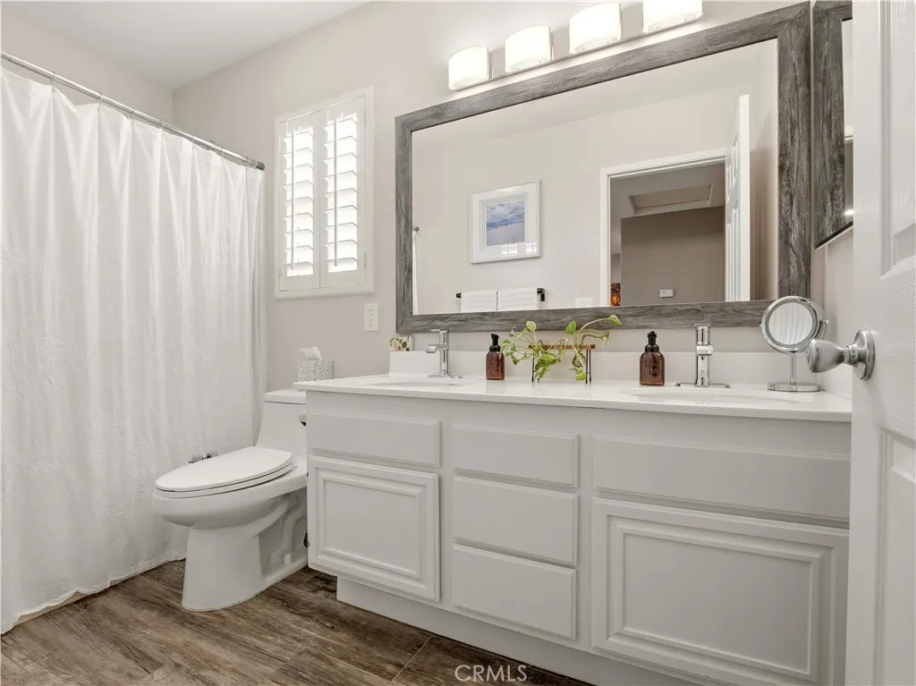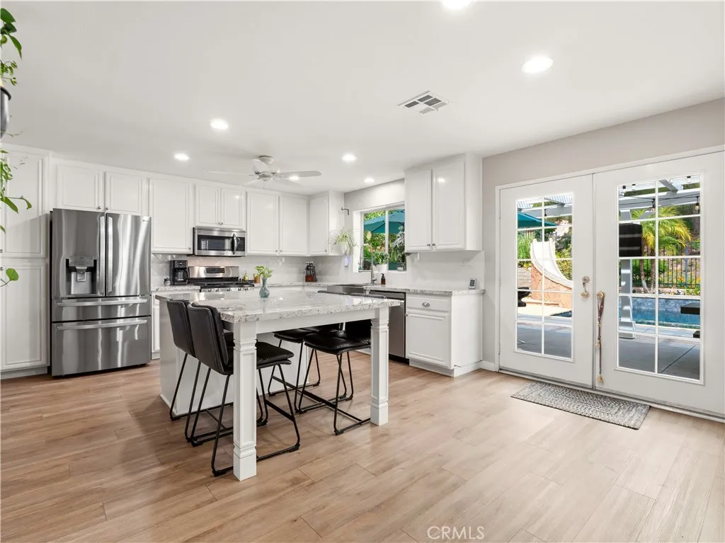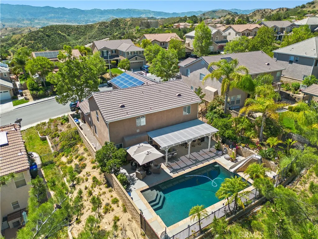 Remodeled Castaic home featuring 5 bedrooms, 3 bathrooms, over 3,000 SQFT, a HUGE loft, bed and full bath downstairs, pebble tech pool with slide, and extremely low HOA with NO Mello-Roos taxes. Step into a light-filled formal living and dining space with an open flow into the large family room with fireplace, ideal for everyday living and entertaining. The thoughtfully designed floor plan includes a highly desirable downstairs bedroom and full bathroom, perfect for guests or in-law quarters. The family room opens to the expansive eat-in kitchen which is the heart of the home, complete with a large center island, ample cabinetry, stunning counters and backsplash, stainless steel appliances and French doors that open to the backyard, creating seamless indoor-outdoor living. A dedicated laundry room and large closet that expands under the staircase complete the main level. Upstairs, youll find a HUGE loft offering flexible space for a media room, playroom, or home office. The spacious primary suite has been beautifully remodeled and features a luxurious ensuite with a freestanding soaking tub, dual vanities, a large glass-enclosed walk-in shower, and dual walk-in closets with stylish barn doors. Three additional bedrooms and an upgraded full bathroom with dual sinks complete the upper level. The private beautifully landscaped backyard is a true entertainers oasis, showcasing a pebble tech pool with slide, covered pergola patio, and a built-in cooking station. Ideally located near breathtaking mountain views, hiking trails, and just minutes from Castaic Lake, Recreation Center
