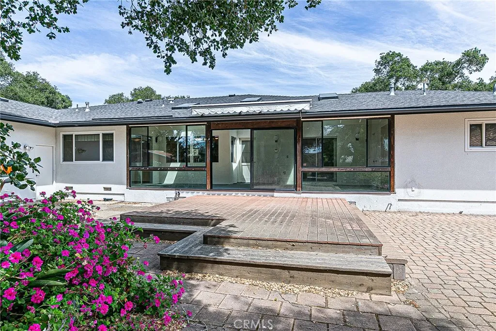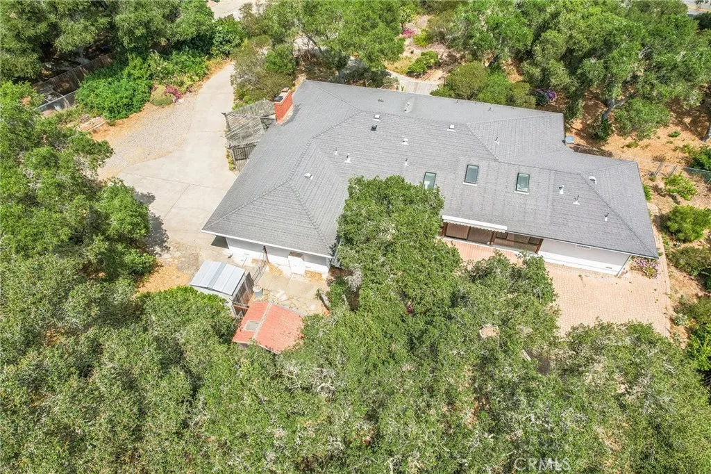 Set on a beautifully landscaped lot surrounded by mature trees and natural privacy, this unique 4-bedroom, 2-bath home offers a rare blend of indoor-outdoor living. A long, inviting driveway creates a sense of arrival and seclusion from the moment you enter. Inside, the home welcomes you with a comfortable living room featuring a corner fireplace with rock hearth and a formal dining room for more traditional gatherings, while a separate family room with a built-in indoor grill offers a great space for casual entertaining. Dual paned windows throughout with custom shutters that enhance the living room, family room, and front bedrooms, add both style and efficiency. The kitchen opens with a breakfast bar to a dining area with views of the private backyard, creating a natural connection between indoor living and the outdoor setting. An inside laundry room with cabinets and sink adds everyday convenience. At the heart of the home is a light-filled enclosed sunroom that adds additional sqft to the homes original 2165sqft. Offering vaulted ceilings, skylights, and walls of glass that bring the outdoors in, this versatile space is ideal for relaxing or entertaining, with direct access to multiple patio areas. Step outside to the expansive backyard featuring paver patios, garden areas, winding pathways, and a canopy of established trees. Landscaping includes mature oaks and manzanita trees, along with fruit and flowering trees and ground cover, creating a peaceful garden retreat with space to enjoy, entertain, or simply unwind. Ideally located near local amenities, with convenient
