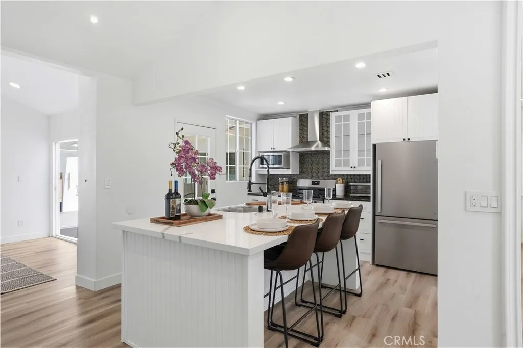 A rare Encino gem that perfectly blends modern design and income potential. Spanning approximately 1,938 sq ft in the main residence plus a 480 sq ft 2-story ADU, this exceptional property delivers both style and versatility in one of Encinos most convenient locations. From the moment you arrive, the curb appeal captivates with lush turf landscaping and custom brown exterior wall panels that add warmth, texture, and undeniable character. Inside, every detail has been curated with intention. The main home features 2 bedrooms and 2 bathrooms, stunning ensuite primary suite with a walk-in closet and custom wood shelving. Wainscoting in the living and dining areas adds a warm, inviting feel, while the cozy family room with a fireplace opens seamlessly to the deck for effortless indoor-outdoor living. Additional highlights include LED recessed lighting throughout, laundry conveniently located in the hallway between the bedrooms, copper plumbing, and new epoxy flooring in the front yard, backyard, and garage. The chefs kitchen is a true centerpiece, showcasing sleek quartz countertops, new stainless steel appliances, and a clean, modern design ideal for both everyday living and entertaining. Step outside to fully finished grounds with fresh epoxy in the front yard, backyard, and garage delivering a polished, resort-style feel throughout. A stunning 2-story ADU (approx. 480 sq ft) with soaring ceilings, walls of windows, a beautifully designed kitchen, full bathroom, and a bright loft space, offering the ultimate flexibility for guests, rental income, or a private retreat. Plus, a