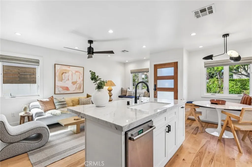 Welcome to 4264 Alla Rd, a beautifully renovated two-bedroom home in the highly desirable Del Rey neighborhood, just moments from Marina del Rey and the best of Westside living. Thoughtfully updated and full of charm, this home offers a rare blend of character, comfort, and move-in-ready convenience in a premier neighborhood. Inside, youll find a bright, open floorplan with wood flooring throughout and a stunning kitchen featuring marble countertops, a center island, and quality appliances. The home is filled with natural light and carefully designed details, creating a warm and inviting atmosphere that truly lives larger than its footprint. The outdoor spaces are equally appealing, with both front and back yards offering room for gardening, relaxing, or al fresco dining. Many mature fruit trees including variou citrus, peach, pomegranate, avocado, grape vines and more make for a year-round bountiful harvest. The primary bedroom is well-sized, and while the second bedroom does not include a traditional closet due to the addition of an interior laundry area, it functions well as a guest room, office, or flex space. Additional highlights include central air conditioning and a detached garage with built-in cabinetry for extra storage. Located within walking distance to highly rated Short Elementary and minutes from Marina del Rey, Mar Vista, and the beach, this home offers exceptional access to dining, shopping, and recreation. 4264 Alla Rd is a true gem that delivers style and comfort in a unbeatable location.