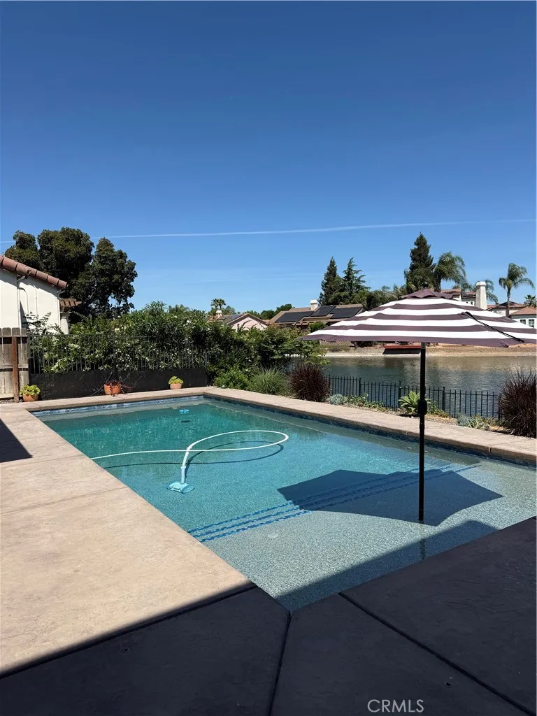 Sit back and enjoy the view! Beautiful home overlooking the lake with a long list of custom features. The kitchen is a chefs dream with a multitude of storage and space to cook as a family. There is a breakfast bar for busy mornings and a formal dining room to wind down the evening. The master suite has a custom closet spacious bathroom giving a clean spa like feel throughout the space. The fourth bedroom has been converted to a private gym and the 3 guest bedrooms are upstairs with 2 full bathrooms. Solar power system installed to meet your power needs. The fully landscaped yard with custom pool and patio that is perfect for entertaining and watching the sunset over the lake.