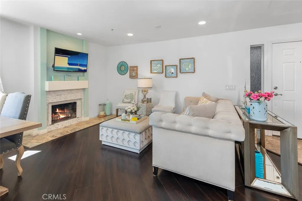 Enjoy this premier Huntington Bayshore location just three short blocks from the sand, within walking distance to Downtown Main Street and the iconic Huntington Beach Pier. Afternoons are spent at Pacific City, indulging in acclaimed dining, boutique shopping, and sunset cocktails overlooking the waves. This beautifully remodeled ground-level 2-bedroom, 2-bathroom home offers an oversized private patio and a timeless coastal aesthetic. Its ideal southwest-facing orientation fills the home with natural light and refreshing ocean breezes throughout the day. The upgraded kitchen features stainless steel appliances, stone countertops, and bar-top seating at the peninsula, opening seamlessly to the spacious family roomperfect for effortless entertaining. Luxury vinyl flooring, recessed lighting, designer paint tones, and a warm fireplace enhance the inviting living and dining spaces. Additional conveniences include in-unit laundry and a well-designed layout. The expansive primary suite offers a remodeled en-suite bathroom with a glass-enclosed shower. The secondary bedroom is paired with a fully updated bathroom, ideal for guests or flexible living. Step outside to your private patioperfect for all-day sunshinecomplete with a deep enclosed storage closet and peaceful greenbelt views toward Main Street. This home also includes two covered parking spaces within a secure, gated garage. Huntington Bayshore residents enjoy resort-style amenities, secure bike storage, enclosed dog park and the convenience of HOA-covered utilities (excluding electricity).