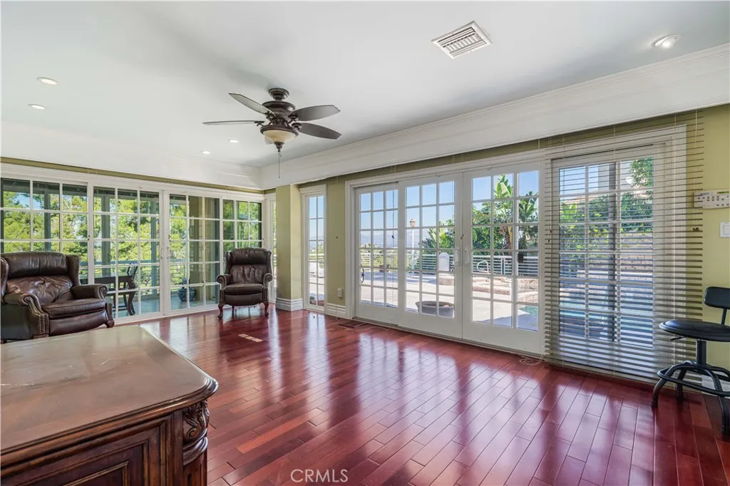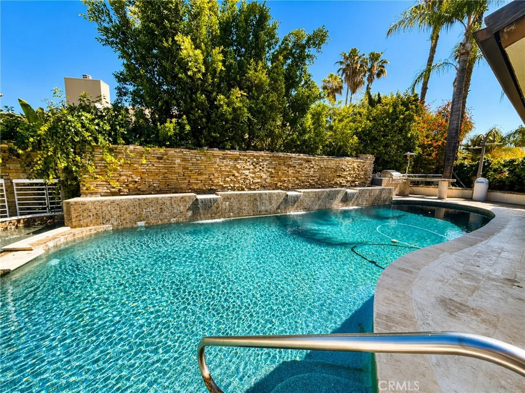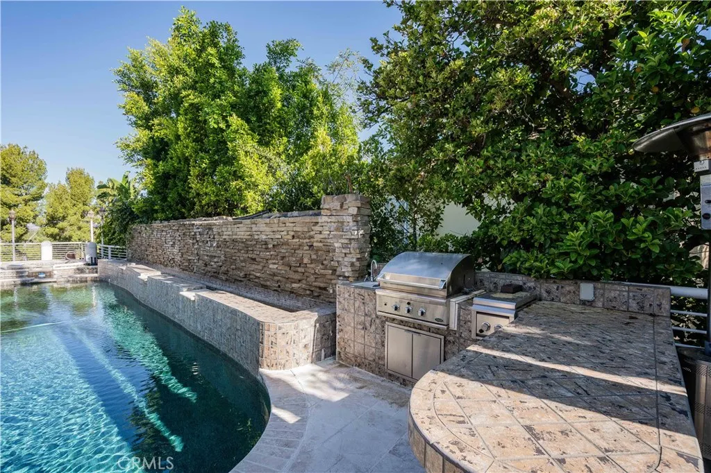 Situated south of the Boulevard in the heart of Encino, on the highly sought-after White Oak Place, this immaculate gated estate offers a refined blend of luxury, comfort, and timeless design. Step through the front doors into a grand foyer where soaring vaulted ceilings, a custom staircase, and an open-concept layout immediately set the tone for the homes sophisticated yet inviting atmosphere. Natural light pours into the formal living spaces, highlighting elegant finishes and seamless transitions between rooms. The gourmet kitchen is thoughtfully designed with granite countertops, custom cabinetry, Viking appliances, and a Sub-Zero refrigeratorperfectly positioned adjacent to the formal dining room and expansive living area, creating an ideal setting for both everyday living and entertaining. Walls of glass frame breathtaking valley views and lead effortlessly to the outdoor spaces. The main level features three generously sized bedrooms, each offering flexibility for guest accommodations or private home offices. Just beyond, a stunning lanai opens to a true backyard retreatcomplete with a resort-style pool, outdoor kitchen, and multiple terraced levels designed for elevated indoor-outdoor living and entertaining. Upstairs, the primary suite is a true architectural showpiece. This serene retreat features an open-concept design with a spa-inspired bathroom, complete with a waterfall shower, custom soaking tub, private sauna, and a bespoke fireplacecreating a tranquil sanctuary within the home. An in-home elevator provides effortless access to the second level, where three