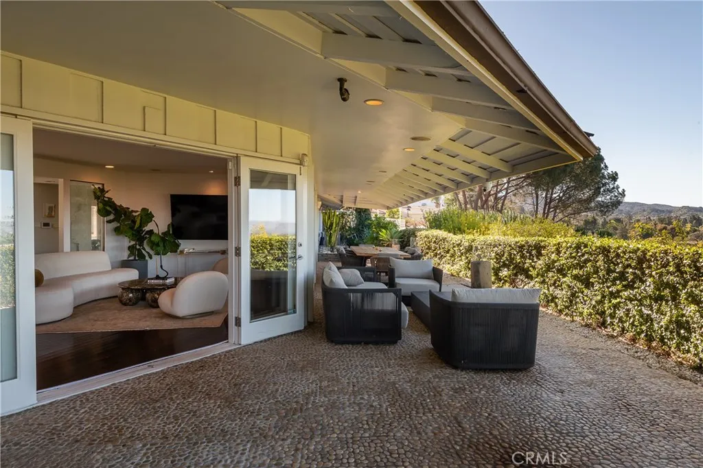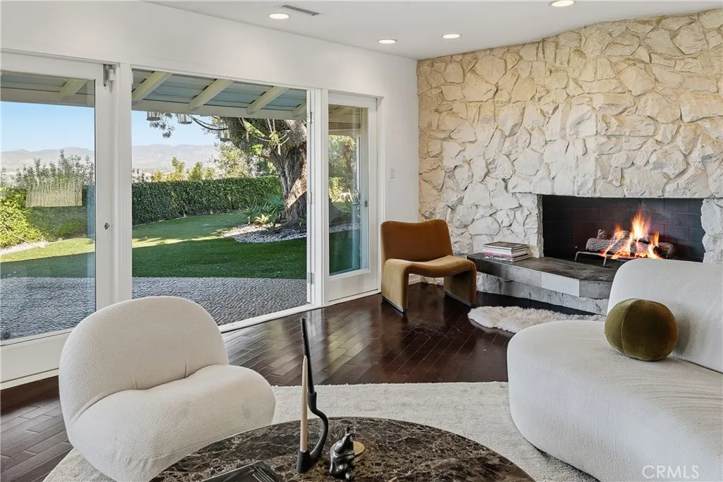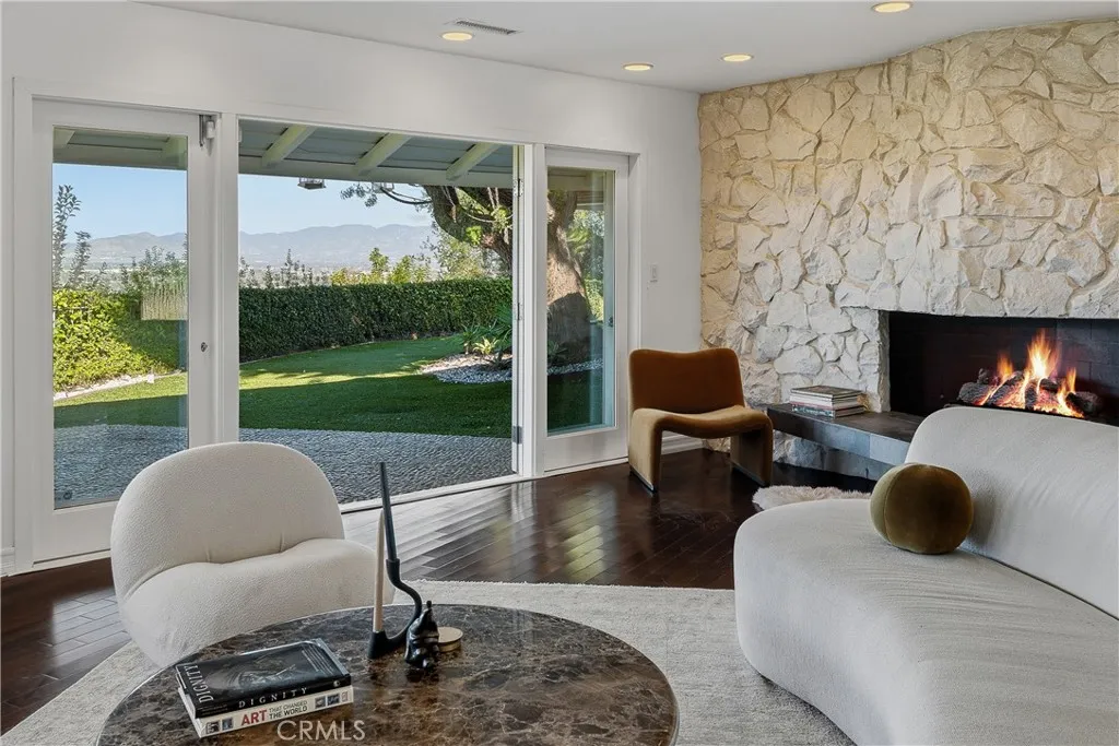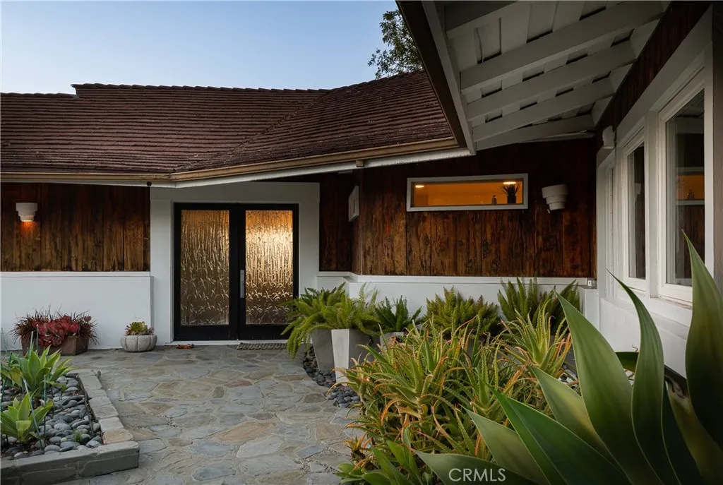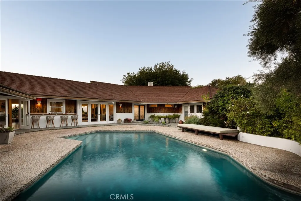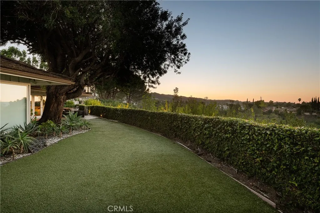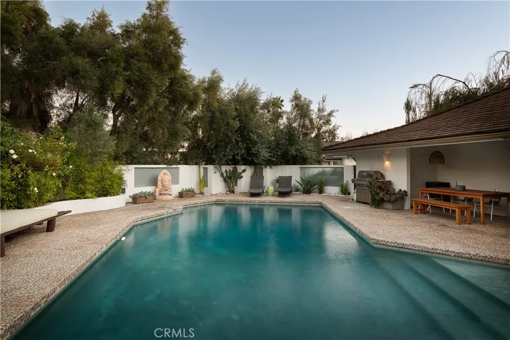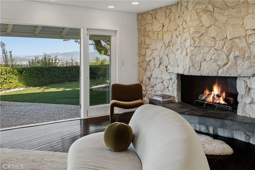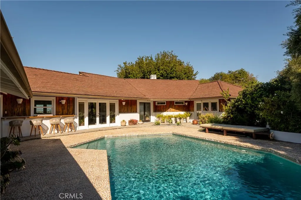 Tucked away on a quiet cul-de-sac in the coveted Royal Oaks neighborhood of Encino, this gated single-story residence offers a rare blend of privacy, design, with show stopping panoramic Valley views. Featuring 4 bedrooms and 4 bathrooms, the property unfolds as a true compound, set behind lush, mature landscaping and centered around a private courtyard that anchors the indoor-outdoor living experience. Walls of glass and French doors wrap the home, flooding the interiors with natural light while creating a seamless connection to the courtyard and surrounding outdoor spaces, with pass-through windows connecting to an interior bar and enhancing the indoor-outdoor flow. The open-concept layout features a modern chefs kitchen with a waterfall-edge island, custom cabinetry, and top-tier stainless steel appliances, leading into the expansive living and dining areas designed for entertaining. The living spaces open directly to covered outdoor dining and lounge areas overlooking panoramic views. The primary suite offers a tranquil retreat with direct outdoor access, a spacious walk-in closet, and a spa-inspired bath with elevated, hotel-style finishes. Secondary bedrooms are generously sized, including one with direct access to the courtyard. The outdoor spaces are arranged for both everyday use and entertaining, with a pool, multiple areas for dining and lounging, and a natural connection between the courtyard and view-facing terraces. Access to the backyard from the street adds a seamless convenience for entertaining. Located in the highly coveted Lanai School District and near