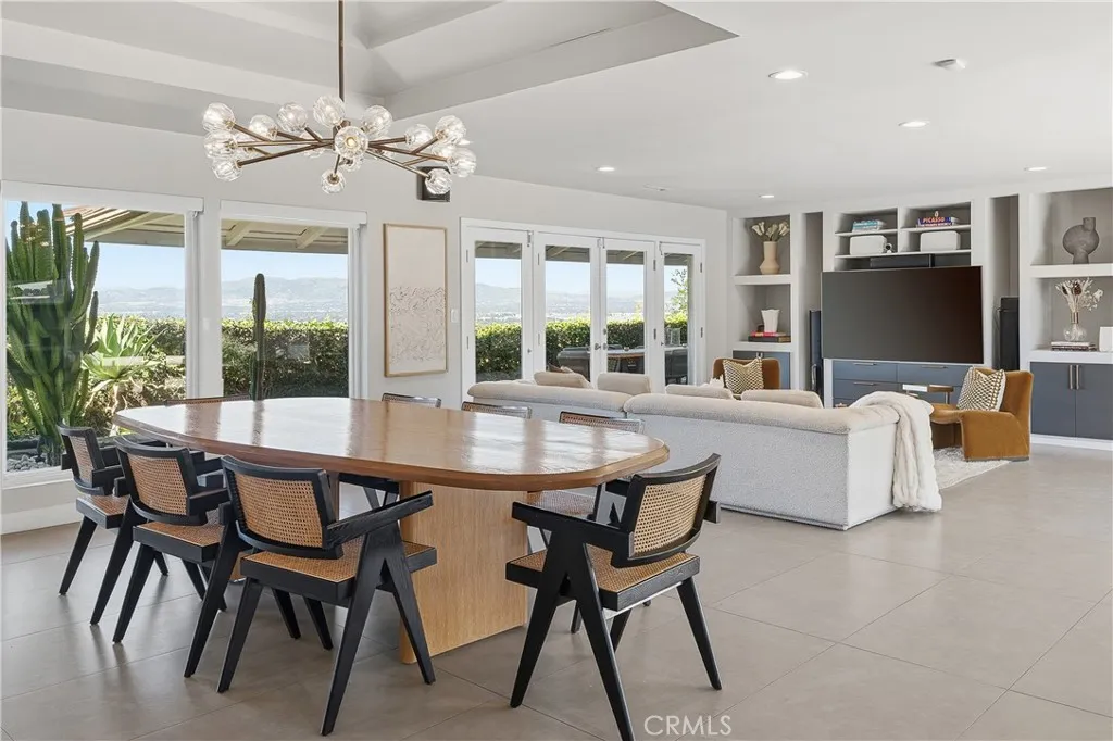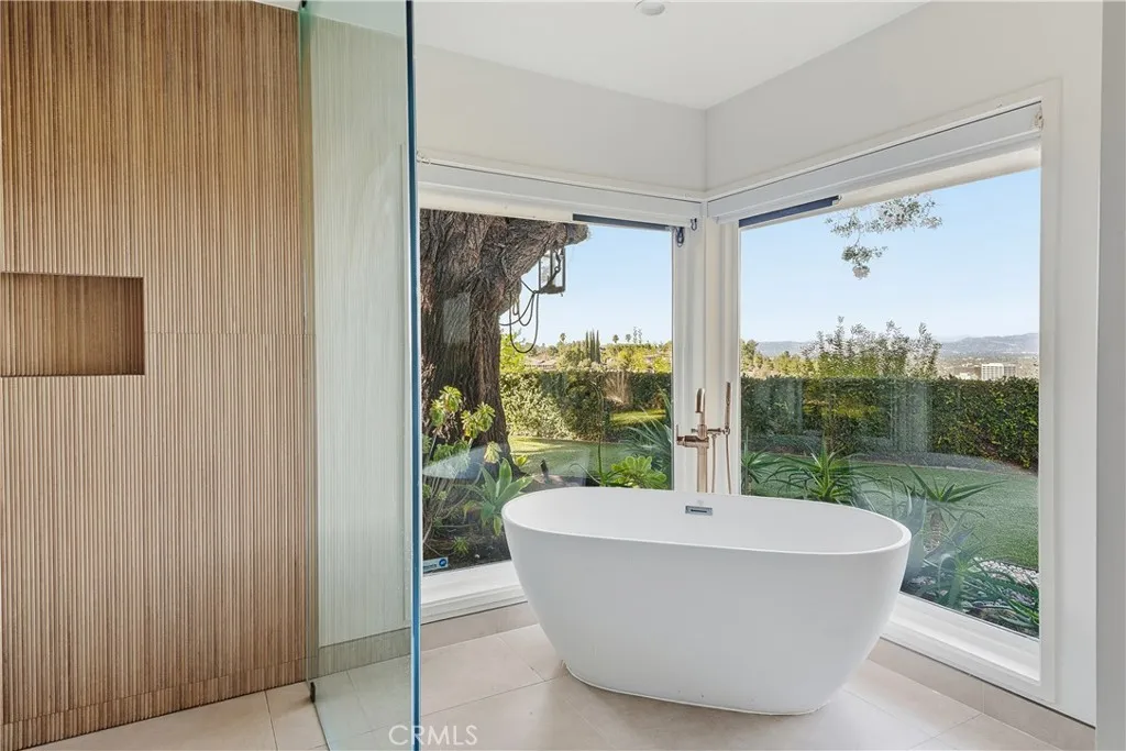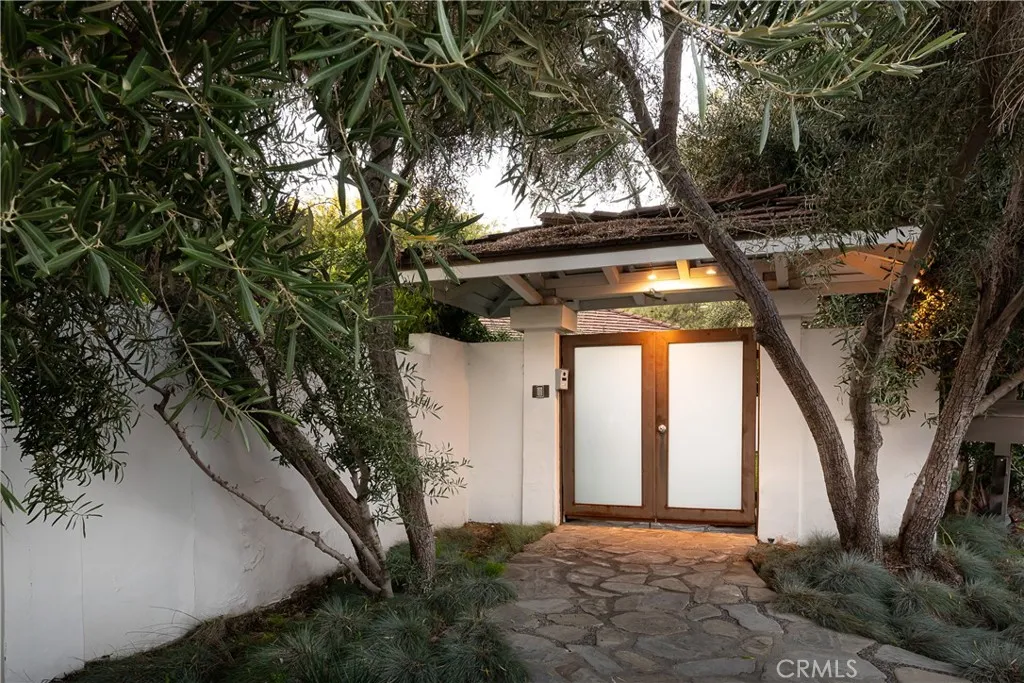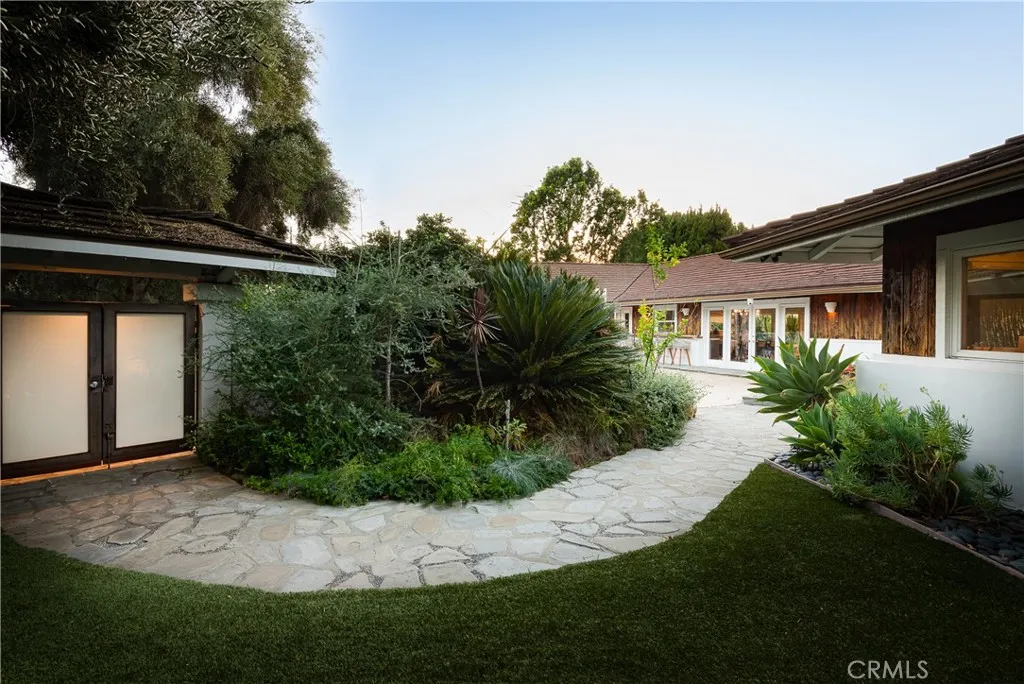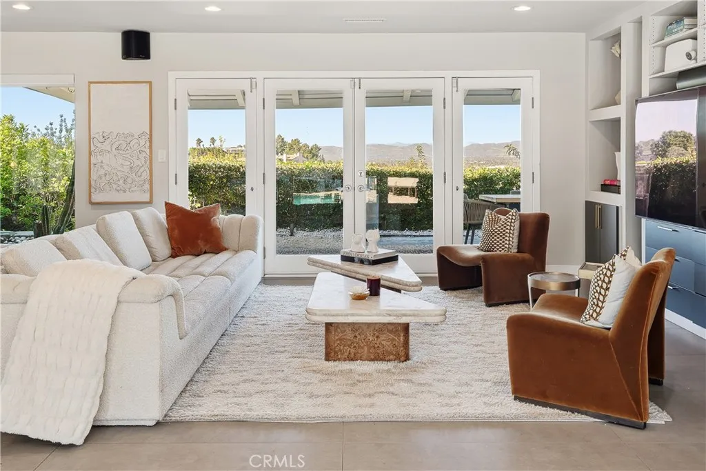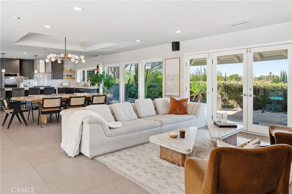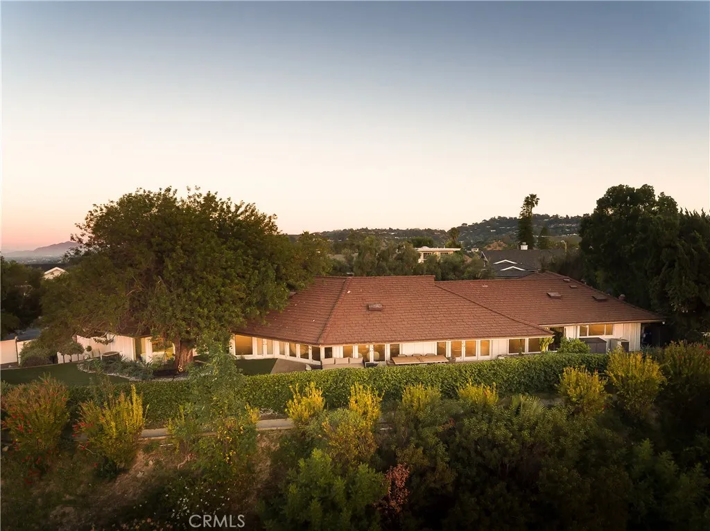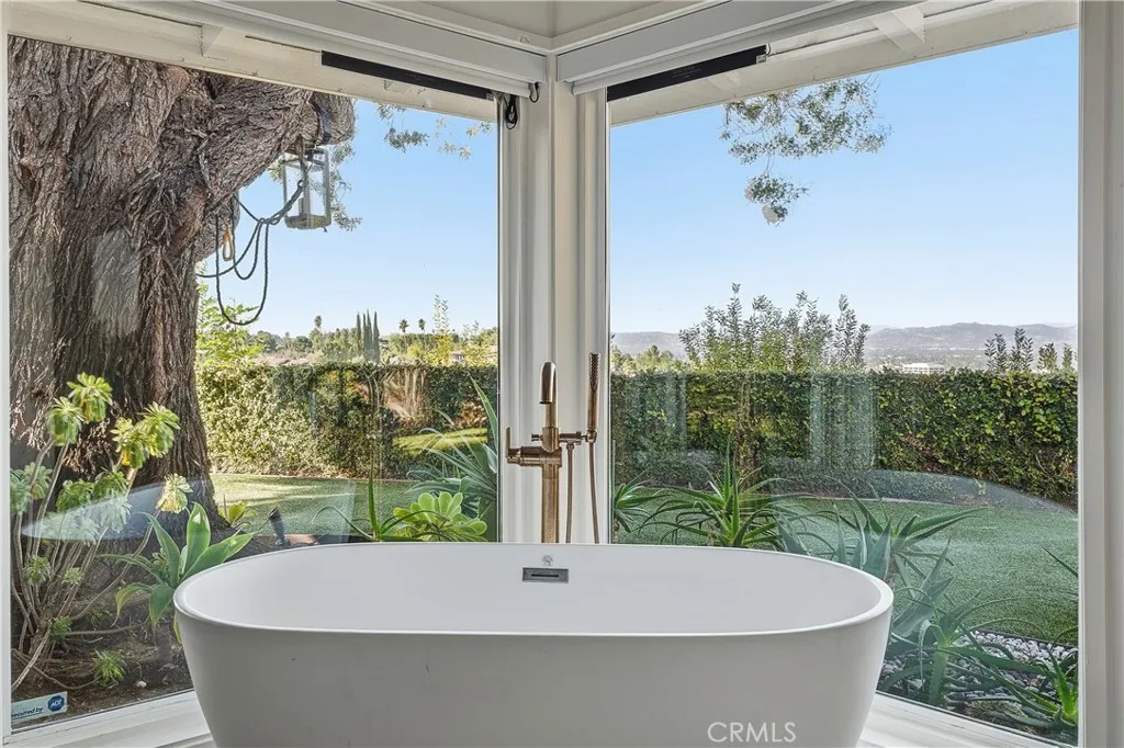 Tucked away on a quiet cul-de-sac in the coveted Royal Oaks neighborhood of Encino, this gated single-story residence offers a rare blend of privacy, design, with show stopping panoramic Valley views. Featuring 4 bedrooms and 4 bathrooms, the property unfolds as a true compound, set behind lush, mature landscaping and centered around a private courtyard that anchors the indoor-outdoor living experience. Walls of glass and French doors wrap the home, flooding the interiors with natural light while creating a seamless connection to the courtyard and surrounding outdoor spaces, with pass-through windows connecting to an interior bar and enhancing the indoor-outdoor flow. The open-concept layout features a modern chefs kitchen with a waterfall-edge island, custom cabinetry, and top-tier stainless steel appliances, leading into the expansive living and dining areas designed for entertaining. The living spaces open directly to covered outdoor dining and lounge areas overlooking panoramic views. The primary suite offers a tranquil retreat with direct outdoor access, a spacious walk-in closet, and a spa-inspired bath with elevated, hotel-style finishes. Secondary bedrooms are generously sized, including one with direct access to the courtyard. The outdoor spaces are arranged for both everyday use and entertaining, with a pool, multiple areas for dining and lounging, and a natural connection between the courtyard and view-facing terraces. Access to the backyard from the street adds a seamless convenience for entertaining. Located in the highly coveted Lanai School District and near