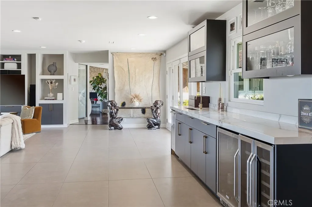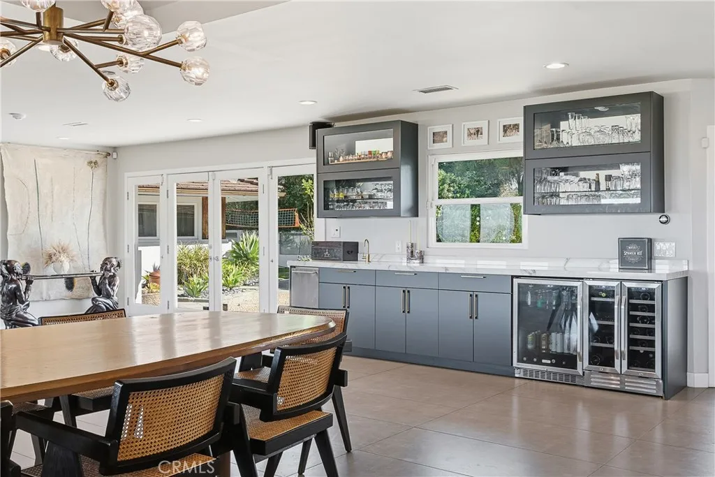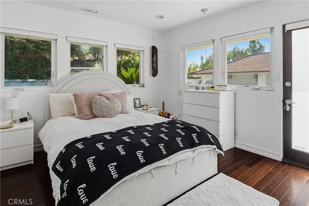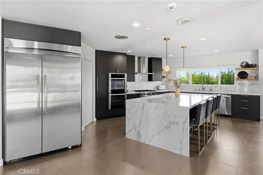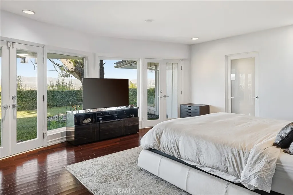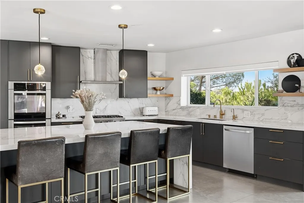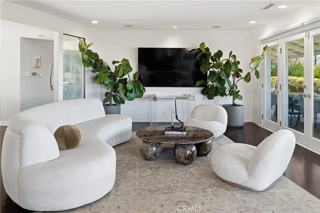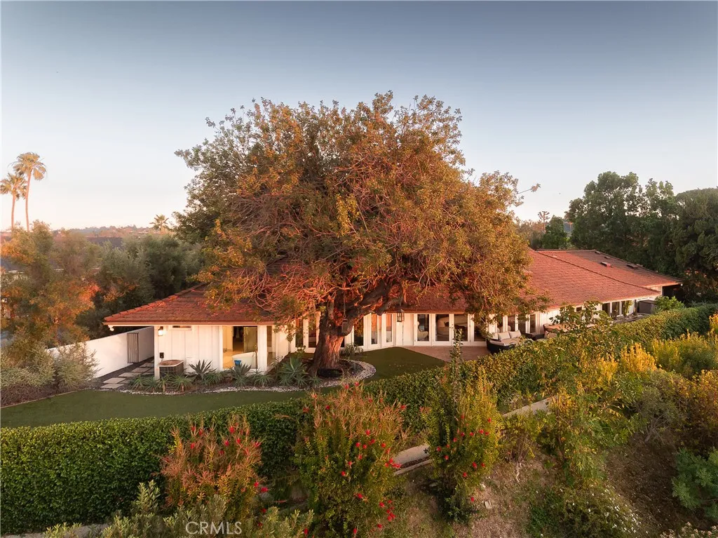 Tucked away on a quiet cul-de-sac in the coveted Royal Oaks neighborhood of Encino, this gated single-story residence offers a rare blend of privacy, design, with show stopping panoramic Valley views. Featuring 4 bedrooms and 4 bathrooms, the property unfolds as a true compound, set behind lush, mature landscaping and centered around a private courtyard that anchors the indoor-outdoor living experience. Walls of glass and French doors wrap the home, flooding the interiors with natural light while creating a seamless connection to the courtyard and surrounding outdoor spaces, with pass-through windows connecting to an interior bar and enhancing the indoor-outdoor flow. The open-concept layout features a modern chefs kitchen with a waterfall-edge island, custom cabinetry, and top-tier stainless steel appliances, leading into the expansive living and dining areas designed for entertaining. The living spaces open directly to covered outdoor dining and lounge areas overlooking panoramic views. The primary suite offers a tranquil retreat with direct outdoor access, a spacious walk-in closet, and a spa-inspired bath with elevated, hotel-style finishes. Secondary bedrooms are generously sized, including one with direct access to the courtyard. The outdoor spaces are arranged for both everyday use and entertaining, with a pool, multiple areas for dining and lounging, and a natural connection between the courtyard and view-facing terraces. Access to the backyard from the street adds a seamless convenience for entertaining. Located in the highly coveted Lanai School District and near