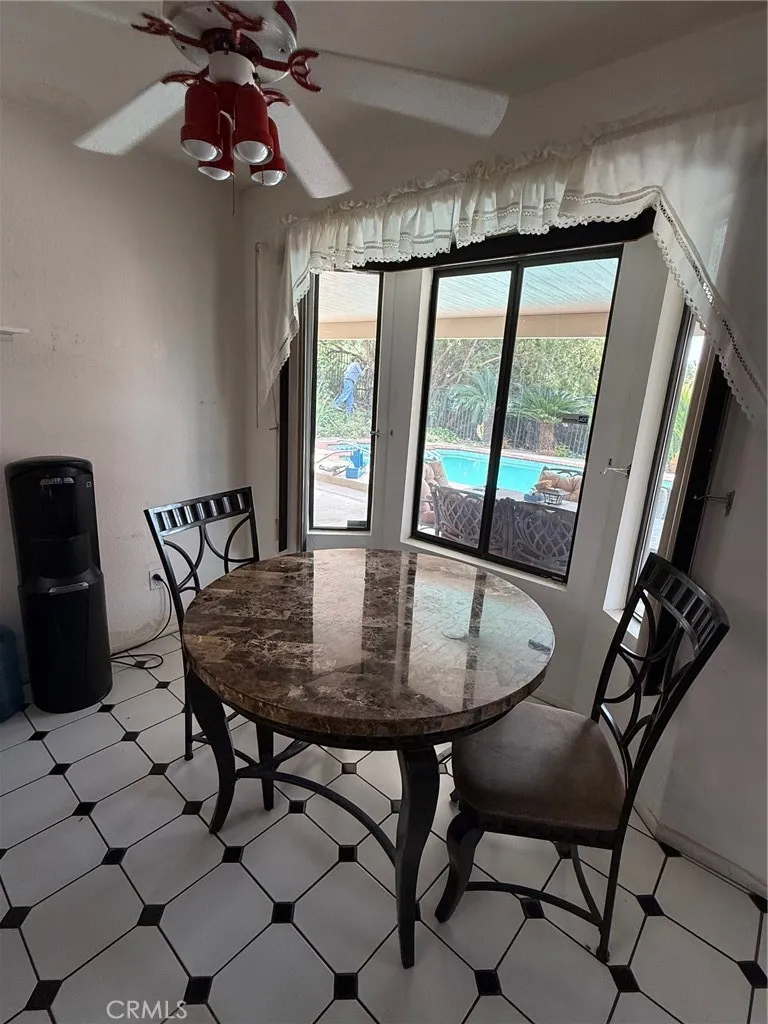 Welcome to this 4-bedroom single story home, where comfort and functionality come together seamlessly. Walking in through the double doory entry is the large living and dining rooms, featuring high ceilings and windows that provide lots of natural light. The brick fireplace completes the space with a cozy fireplace that creates the perfect ambiance for gatherings. Each bedroom offers generously sized closets, providing ample storage for every lifestyle. The spacious primary suite is a true retreat, featuring soaring high ceilings and access to the backyard for an indoor-outdoor connection. The open-concept kitchen and family room flow effortlessly together, highlighted by a sliding glass door that leads to the backyard. Outside, enjoy a covered patio, sparkling pool and spa, and a built-in BBQ areaall set against stunning valley views that make this home ideal for both relaxing and entertaining.