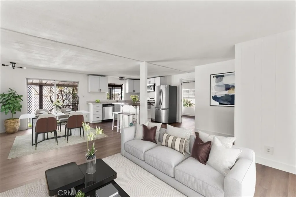 The ONLY 4 bedroom, 2 bathroom home available in Park Royale, and it has been fully remodeled top to bottom for true move-in ready living! This rare open-concept floor plan has been transformed with fresh paint inside and out, brand new stainless steel appliances, new quartz countertops, new cabinetry, and waterproof luxury vinyl plank flooring throughout. Designer bathrooms feature new vanities with double sinks and upscale finishes, while abundant natural lighting flows through every room. Outside, enjoy 3-car covered parking under an awning, two storage sheds, and a welcoming side patio perfect for morning coffee or evening relaxation. Additional highlights include a certified roof, a one-year home warranty with AC and heating coverage, and a new refrigerator included with the home. An exceptional opportunity to own the largest floor plan in the community showings available by appointment.