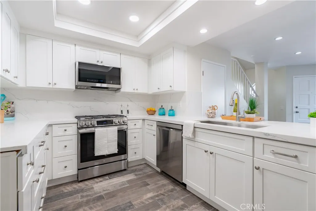 Welcome to 13376 Taft Street #2, A beautiful turnkey and highly remodeled townhome-style residence located in the heart of Garden Grove. This spacious 3-bedroom, 2.5-bath home offers 1,239 square feet of comfortable living space and a 2-car attached garage, blending functionality with timeless appeal. Step inside to discover a bright and open floor plan featuring recessed lighting and a seamless flow between living and dining areas. The inviting living room showcases tile flooring and a cozy fireplace, perfect for relaxing or entertaining guests. A sliding glass door fills the space with natural light and provides easy access to a private patio area ideal for outdoor dining or quiet mornings. The kitchen was recently remodeled with new cabinets, new quartz counter-tops, new appliances, and new farm sink. Upstairs, youll find three generously sized bedrooms including a spacious primary suite offering comfort and privacy. Additional highlights include central air and heating, new outlets, new paint throughout, and an attached 2-car garage with direct access plus one assigned outside parking spot in this gated community. Prime location close to shopping, dining, schools, Costco, and easy freeway access. Low HOAs.