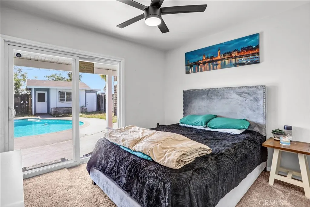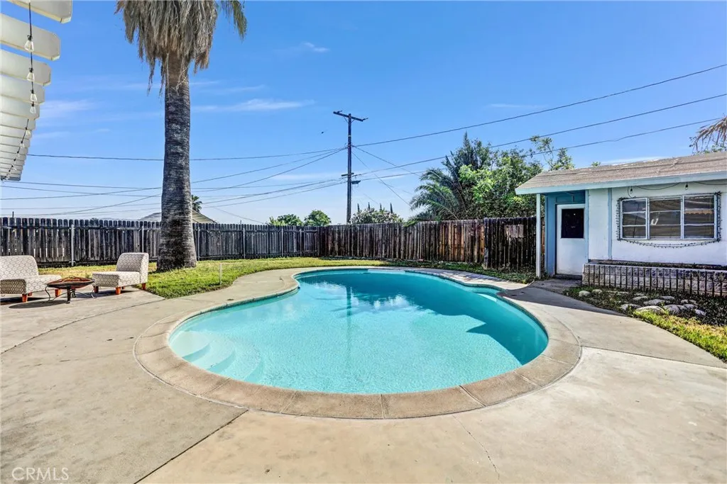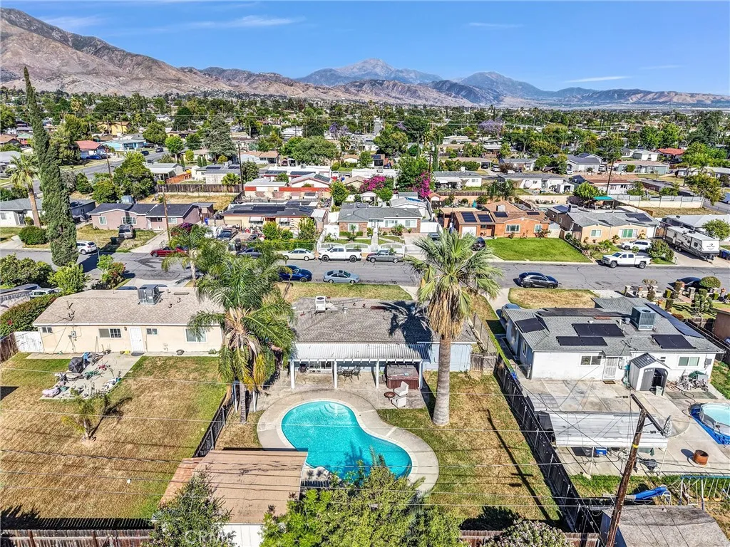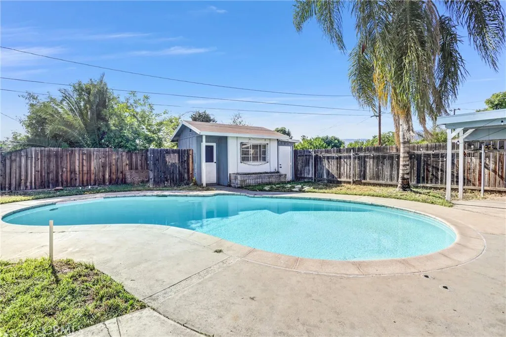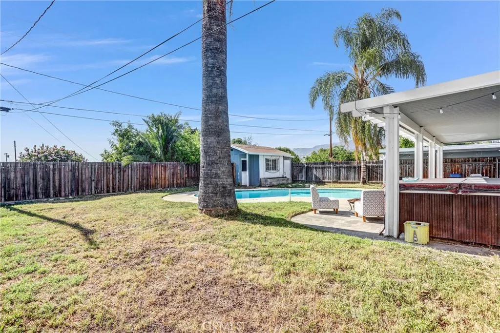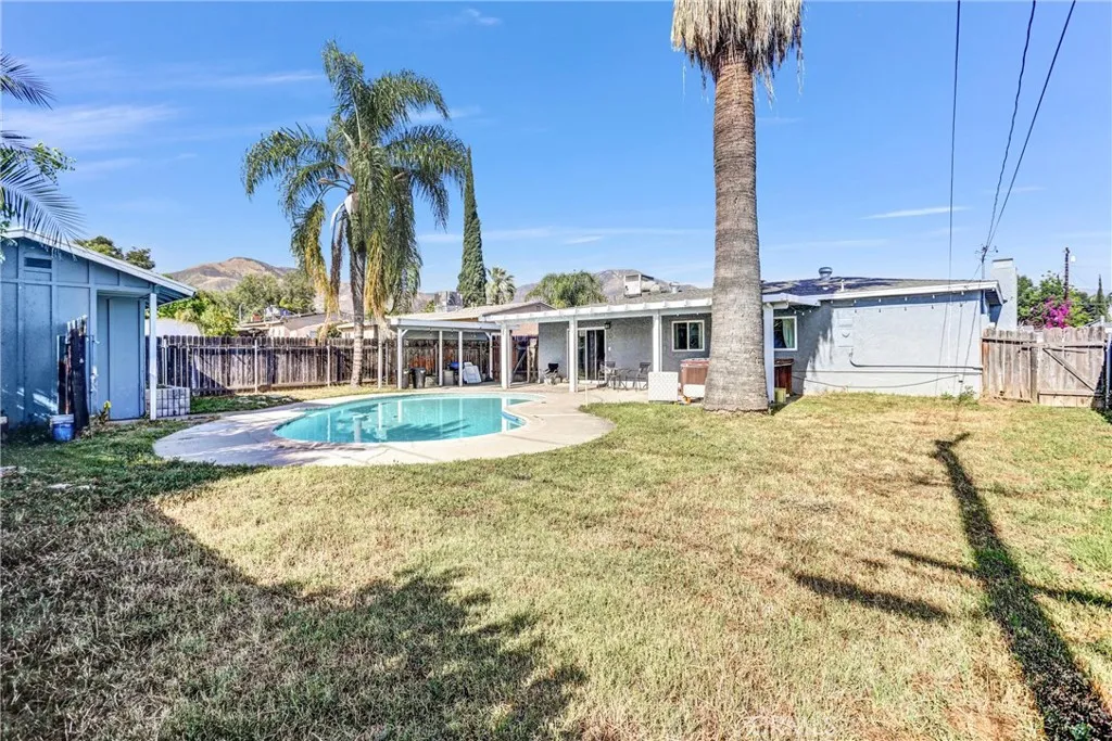 4 BEDROOM POOL HOME with spacious front yard and breathtaking views of SoCal mountains. Inside you'll find an OPEN CONCEPT floor plan, functional layout of the living, dining room and kitchen. A unique bay window seating area right in front of the brick fireplace to watch those captivating mountains. This home is proud to feature updated interior/exterior with dual pane windows and a dedicated indoor laundry space. The backyard oasis centers around the sparkling swimming pool and patio complete with big Palm trees. Backyard includes a bonus building in the back of the property that would be perfect for a workshop, pool house or even an outdoor bar/kitchen set up. This home is convenient located in a nice, quiet neighborhood just a short distance to freeways, shopping and Casino.
