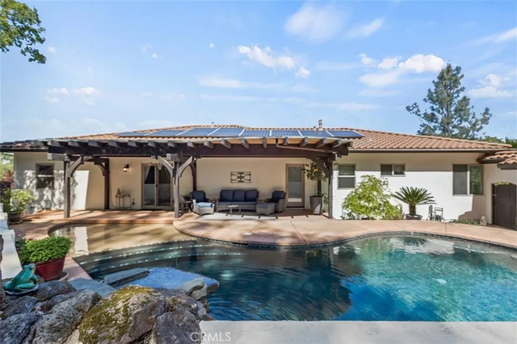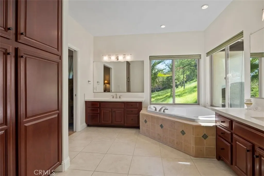 Stunning Tuscan Estate in Exclusive Gated Canyon Oaks Community! Welcome to this exceptional Tuscan-style residence nestled within the prestigious, gated Canyon Oaks golf course community. Situated on nearly half an acre, this 4-bedroom, 4-bathroom estate offers breathtaking views, timeless elegance, and thoughtfully designed living spaces. Step inside to soaring ceilings and an abundance of natural light streaming through numerous picture windows, creating a bright and airy ambiance throughout. Beautiful laminate wood flooring flows seamlessly across the main living areas. Designed for both luxury and functionality, the home features two spacious primary suites, including a main-floor retreat complete with a jetted tub, separate walk-in shower, and generous walk-in closet. A second primary suite is located on the lower level, offering privacy and flexibility for guests or multi-generational living. The heart of the home is the well-appointed kitchen, showcasing custom self-closing cabinetry and drawers, pots and pans drawers, granite countertops, a large island, top-of-the-line appliances, gas cooktop, trash compactor, and a walk-in pantry. Adjacent to the kitchen, enjoy a charming breakfast nook with picturesque views. Entertain in style in the expansive formal dining room, or relax in the luxurious living room featuring a fireplace and panoramic views that open seamlessly to a massive verandaperfect for indoor-outdoor living. The veranda overlooks the golf course and includes its own outdoor dining area. Additional interior spaces include a private office with a closet a