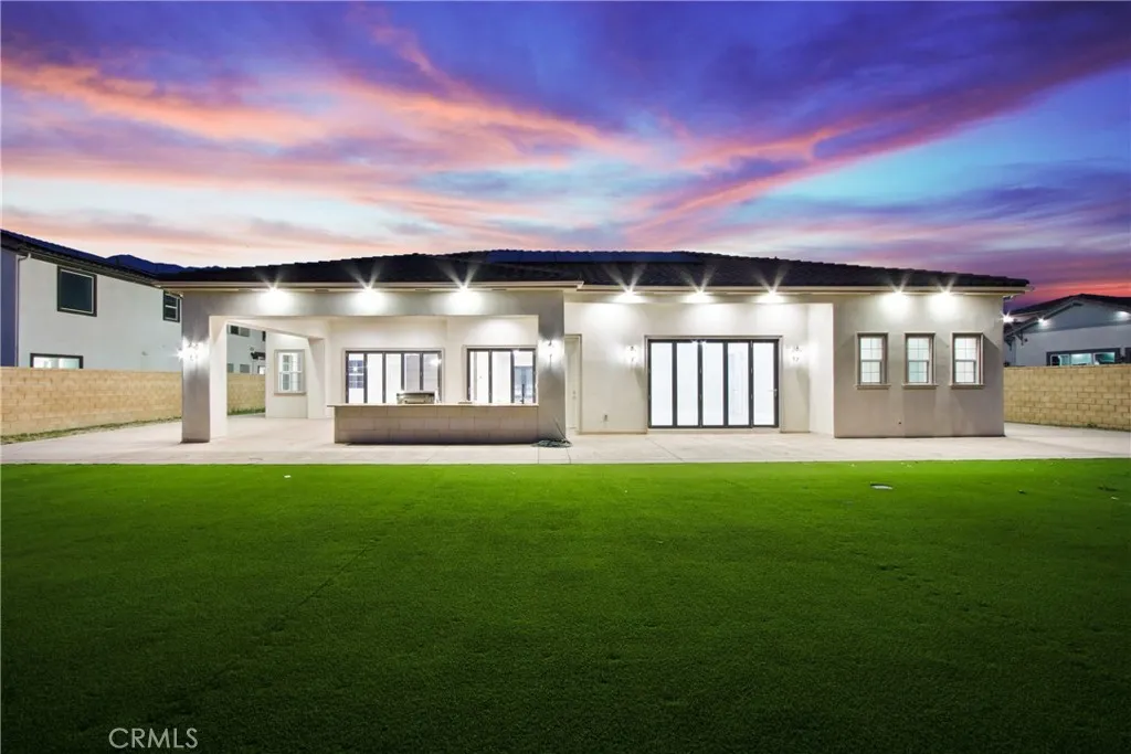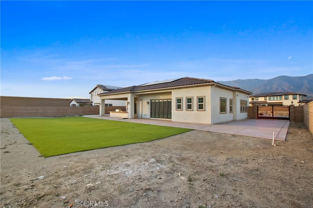 Welcome to 13715 Copley Drive, Rancho Cucamonga, a stunning brand-new luxury estate offering 4 bedrooms, 5.5 bathrooms, and 4,554 sq ft of refined living space on a -acre horse-zoned lot in an exclusive enclave of custom homes. Designed for modern living, entertaining, and multi-generational flexibility, this residence impresses from the moment you enter through the 8-foot custom double entry doors, opening to soaring ceilings and a bright open-concept floor plan. Expansive living areas are enhanced by three bi-folding glass doors that seamlessly connect indoor and outdoor spaces. The chefs kitchen is a showpiece featuring high-end Forno appliances, premium finishes, and generous workspaceideal for hosting large gatherings. Each bedroom includes its own private en-suite bath, while a striking custom fireplace feature wall adds warmth and architectural elegance. Finishes throughout include Spanish porcelain slab countertops, full-height shower walls, frameless stainless shower doors, and upgraded lighting and plumbing fixtures. Built with efficiency and comfort in mind, the home includes a fully paid solar system with 46 panels, 18kWh system with a battery backup of 13 kWh, dual-zone HVAC, and pre-wiring for smart home features. The outdoor space offers a resort-style setting with RV parking and double gates, stamped colored concrete, a built-in BBQ island, outdoor fireplace, and approximately 3,000 sq ft of premium artificial turf. The flat, usable lot provides excellent ADU potential, while front landscaping features water-saving drip irrigation. Additional highlights incl