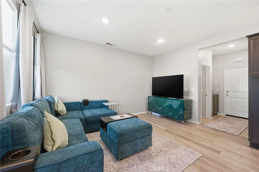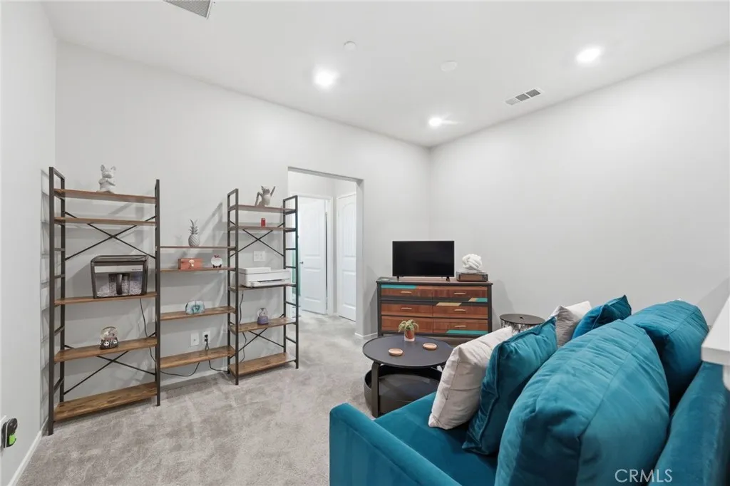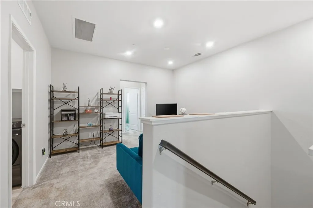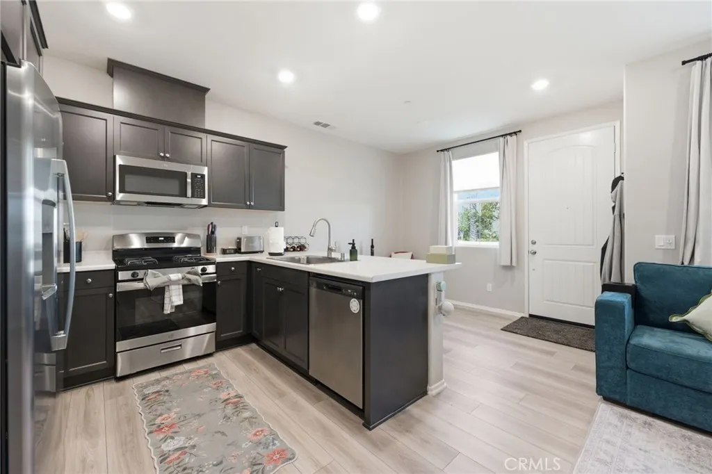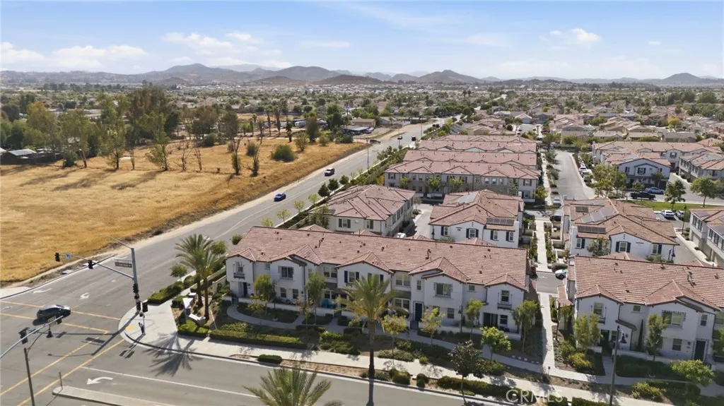 Welcome to this well-maintained and thoughtfully designed 2-bedroom condo, where location and modern living come together. Built in 2021, this home offers a clean, updated feel and a functional layout suited for everyday living. Ideally situated with convenient access to the 215 freeway, this property is within walking distance to restaurants, shopping, and nearby walking, hiking, and biking trails. It is also located near Santa Rosa Academy, a highly regarded charter school. The community offers a variety of amenities for residents to enjoy, including a pool, playground, outdoor cooking and BBQ area, and well-maintained grounds. Additional features include walking paths with fitness stations and open park areas. This condo features a private front patio with a gated entry, offering a comfortable outdoor space with views of the nearby school. Inside, the main level offers an open floor plan with the living, dining, and kitchen areas seamlessly connected. The kitchen is equipped with stainless steel appliances, and the main floor also includes a convenient half bathroom and direct access to the two car garage. Vinyl plank flooring is featured throughout the downstairs area, as well as in the bathrooms and laundry room. Upstairs, the layout includes a spacious primary bedroom with a walk-in closet and an ensuite bathroom featuring dual sinks and a step-in shower. You will also find an additional bedroom, a versatile loft area, a full hall bathroom, and a dedicated laundry room. The upstairs living spaces offer comfort and flexibility, with carpeted flooring throughout. Additi