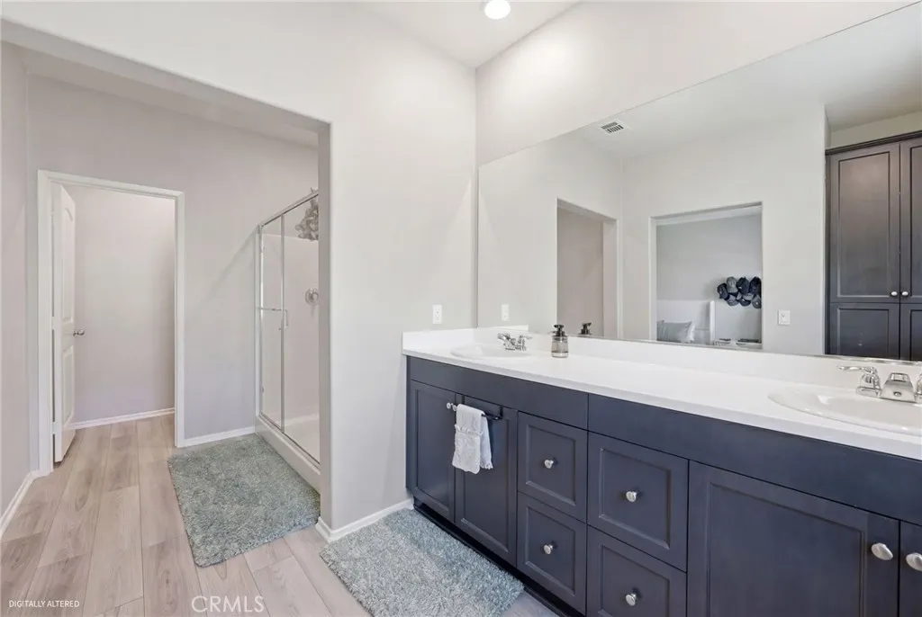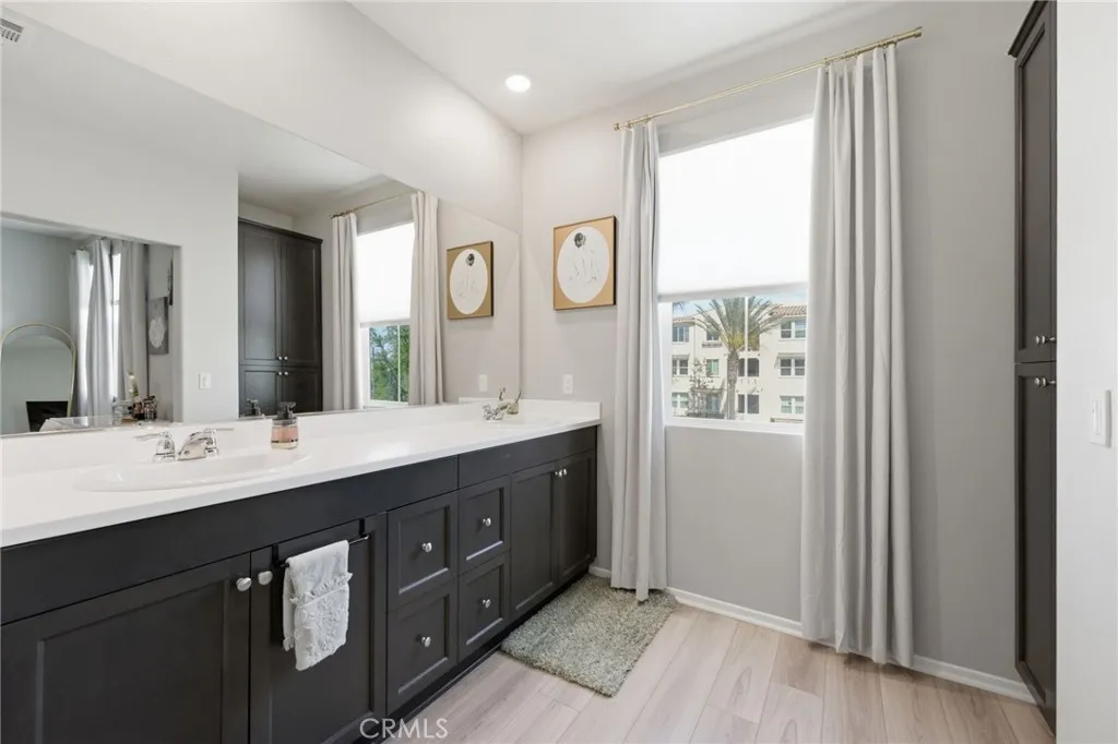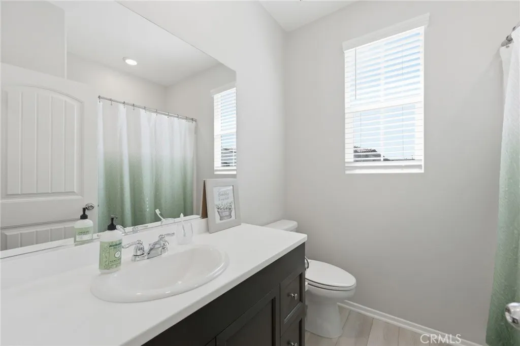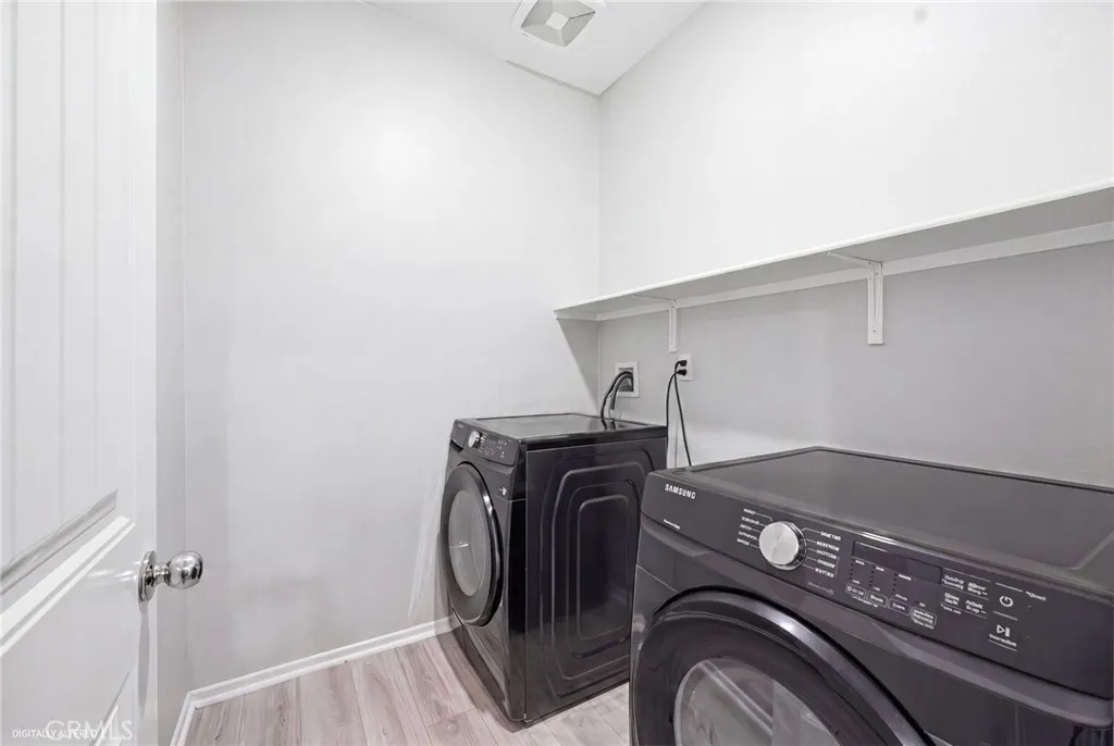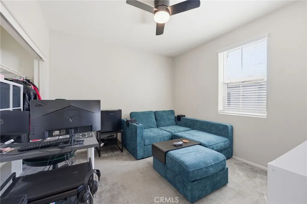 Welcome to this well-maintained and thoughtfully designed 2-bedroom condo, where location and modern living come together. Built in 2021, this home offers a clean, updated feel and a functional layout suited for everyday living. Ideally situated with convenient access to the 215 freeway, this property is within walking distance to restaurants, shopping, and nearby walking, hiking, and biking trails. It is also located near Santa Rosa Academy, a highly regarded charter school. The community offers a variety of amenities for residents to enjoy, including a pool, playground, outdoor cooking and BBQ area, and well-maintained grounds. Additional features include walking paths with fitness stations and open park areas. This condo features a private front patio with a gated entry, offering a comfortable outdoor space with views of the nearby school. Inside, the main level offers an open floor plan with the living, dining, and kitchen areas seamlessly connected. The kitchen is equipped with stainless steel appliances, and the main floor also includes a convenient half bathroom and direct access to the two car garage. Vinyl plank flooring is featured throughout the downstairs area, as well as in the bathrooms and laundry room. Upstairs, the layout includes a spacious primary bedroom with a walk-in closet and an ensuite bathroom featuring dual sinks and a step-in shower. You will also find an additional bedroom, a versatile loft area, a full hall bathroom, and a dedicated laundry room. The upstairs living spaces offer comfort and flexibility, with carpeted flooring throughout. Additi
