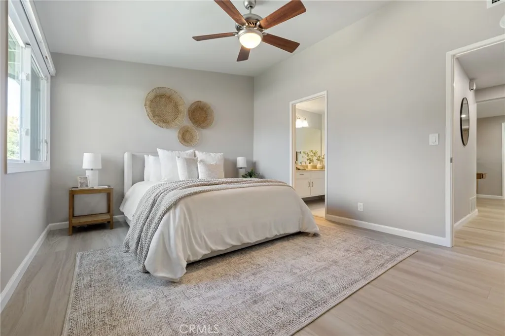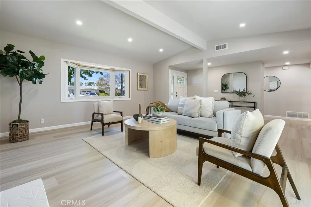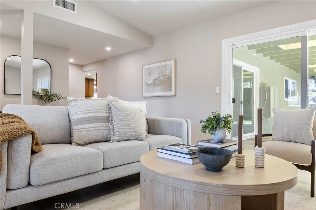 Welcome to your new home, an exceptional opportunity to own a beautifully updated single-story ranch in one of Costa Mesas most coveted neighborhoods, Mesa Del Mar. Offering 3 bedrooms, 2 bathrooms, and approximately 1,501 square feet on a generous 6,510 square foot lot, this is the ideal starter home with room to grow all with low property taxes and no HOA. Pride of ownership shines throughout, as this home has been lovingly maintained by its original owner and thoughtfully refreshed to blend comfort with modern convenience. Recent upgrades include new laminate flooring, fresh interior paint, exterior paint completed less than two years ago, and energy-efficient windows and sliding doors. Additional enhancements such as an upgraded electrical panel with EV charger compatibility, A/C, recessed lighting, automated blinds in the living room and primary suite, ceiling fans in every bedroom, and a Ring doorbell with exterior cameras provide both style and peace of mind. Inside, the light-filled living room welcomes you with high ceilings, a cozy gas fireplace, and direct access to the backyard patio, perfect for indoor-outdoor living. A separate dining area just off the kitchen also features sliding door access to the patio, creating an ideal flow for entertaining. Step outside to your expansive and private backyard retreat, complete with low-maintenance turf, lush landscaped borders, a mature orange tree, and an automatic sprinkler system. Multiple patio access points and a rare pull-through garage door that opens to the yard offer endless possibilities for entertaining, play,