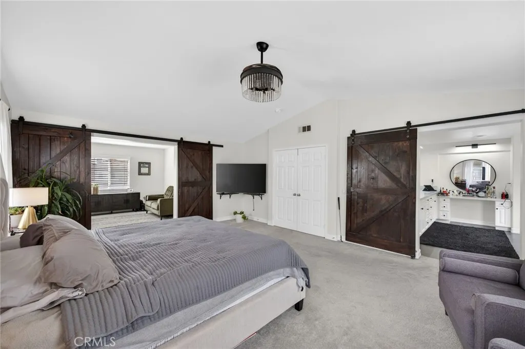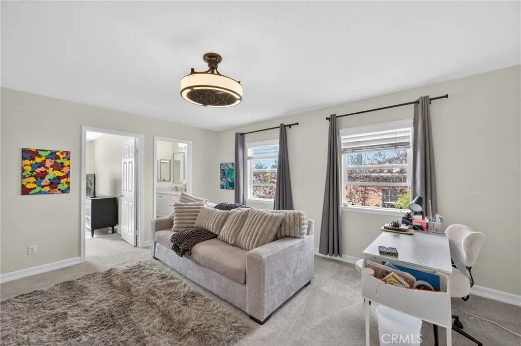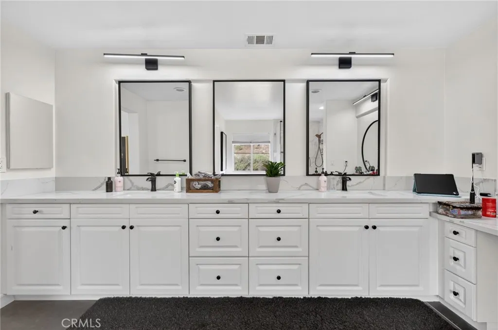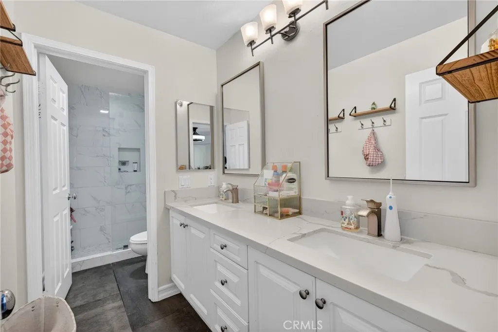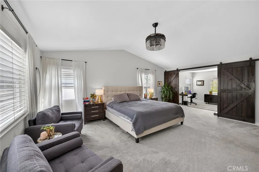 Welcome to The Fairways at Redhawk, Temecula's premier gated golf course community. This 4-bedroom, 3-bath home offers 3,545 square feet of bright, thoughtfully designed living space with neutral finishes and upgraded touches throughout. The remodeled kitchen features white raised-panel cabinetry, a large center island with dramatic stone countertops, gas cooktop, double oven, stainless steel appliances, and subway tile backsplash. A bright breakfast nook opens to the backyard through a sliding glass door and flows into the family room, making it a comfortable space for everyday living and entertaining. The master suite is a true retreat. Vaulted ceilings and dual barn doors set the tone, with one opening to a private attached office and the other to a fully remodeled spa-style bath. The ensuite features dual vanities with stone countertops, a dedicated makeup vanity, frameless glass walk-in shower with floor-to-ceiling marble tile, a soaking tub with marble surround, and a spacious walk-in closet. Black hardware and designer lighting complete the look. The flexible floor plan also includes a main-level bedroom and full bath, ideal for guests or multigenerational living, plus three additional bedrooms upstairs and a large bonus room ready to serve as a media room, playroom, or gym. Step outside and unwind in your own private oasis, complete with an above-ground jacuzzi spa, perfect for Southern California evenings after a round on the course. Families will love the award-winning schools serving this neighborhood, consistently ranked among the best in Riverside County. A spl