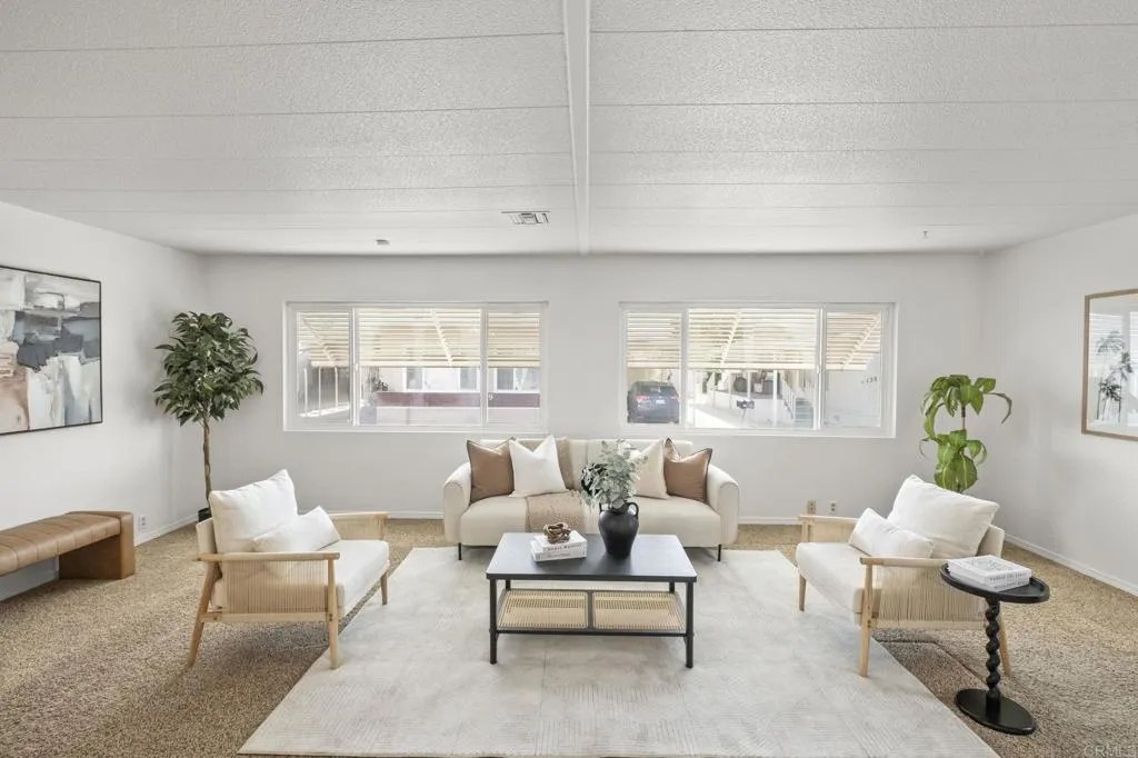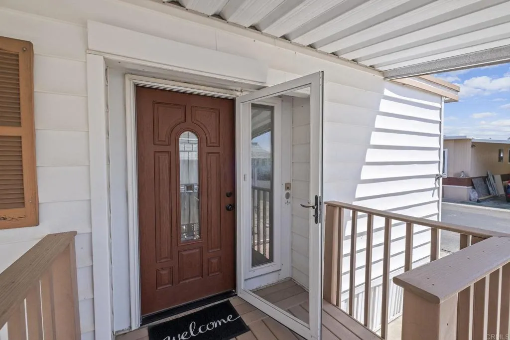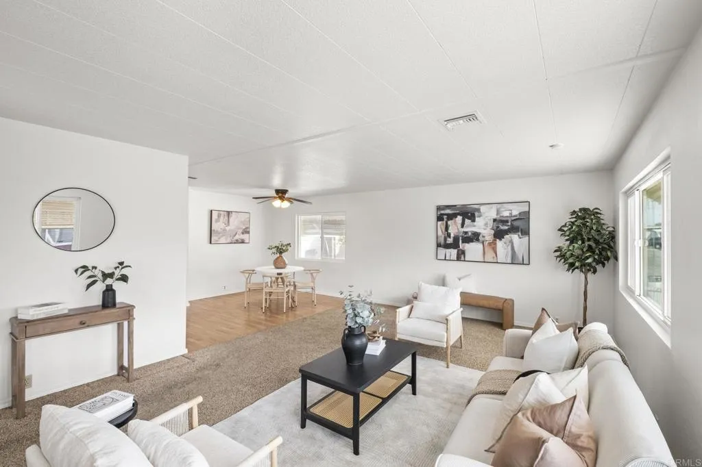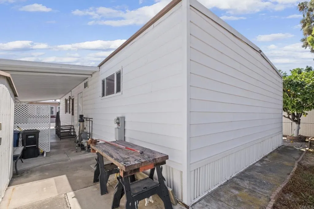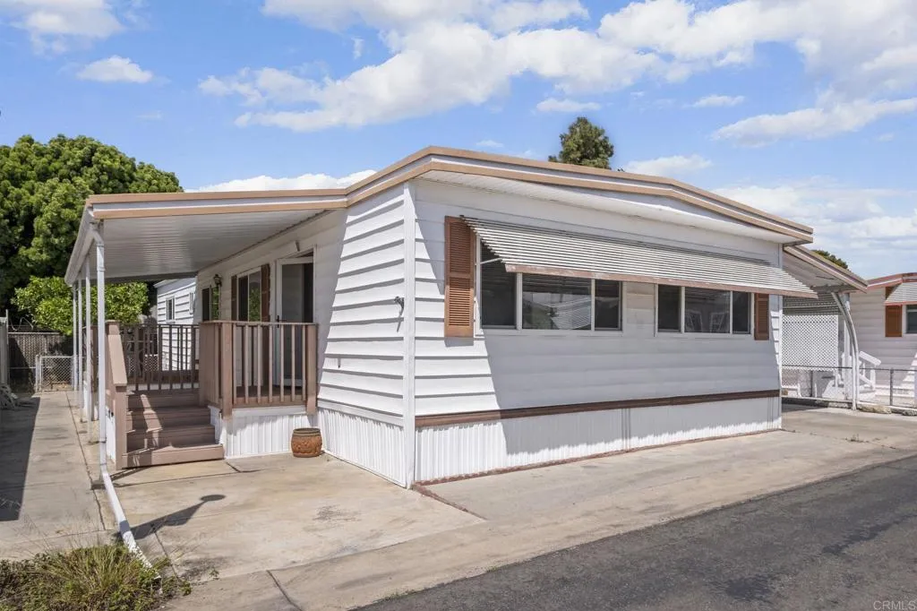 Welcome to Orange Tree Mobile Home Park, a private gated 55+ community where you own both home and landan incredible opportunity for low-maintenance living at a great value! This lovingly cared-for home has been in the same family since it was purchased new, and reflects true pride of ownership throughout. Step inside to an inviting open floor plan featuring a spacious living room, dining area, and separate family room. Natural light fills the home through dual-pane windows, enhancing the fresh interior paint and bright, airy feel. Both generously sized bedrooms offer large closets, ceiling fans, and direct access to their own beautifully upgraded bathrooms, providing comfort and privacy for residents and guests alike. Additional highlights include indoor laundry with washer and dryer included, a whole-house water filtration system, and Solatubes for additional natural light. Orange Tree residents enjoy a low $105 HOA fee that covers amenities including: gated entry, a car wash station, extra laundry facilities, and two pools with clubhouses with full kitchens, which are available for private party rentals. On-site RV parking is available for only $75 per month. It's also a great location, with easy access to the 5 and 805 freeways. Less than 2 miles to San Diego Bay, it's a short 15 minute drive to Imperial Beach. To top it off, the property includes two large storage sheds. This is a rare chance to own in a well-maintained, amenity-rich community with land ownership included and a very low monthly fee!