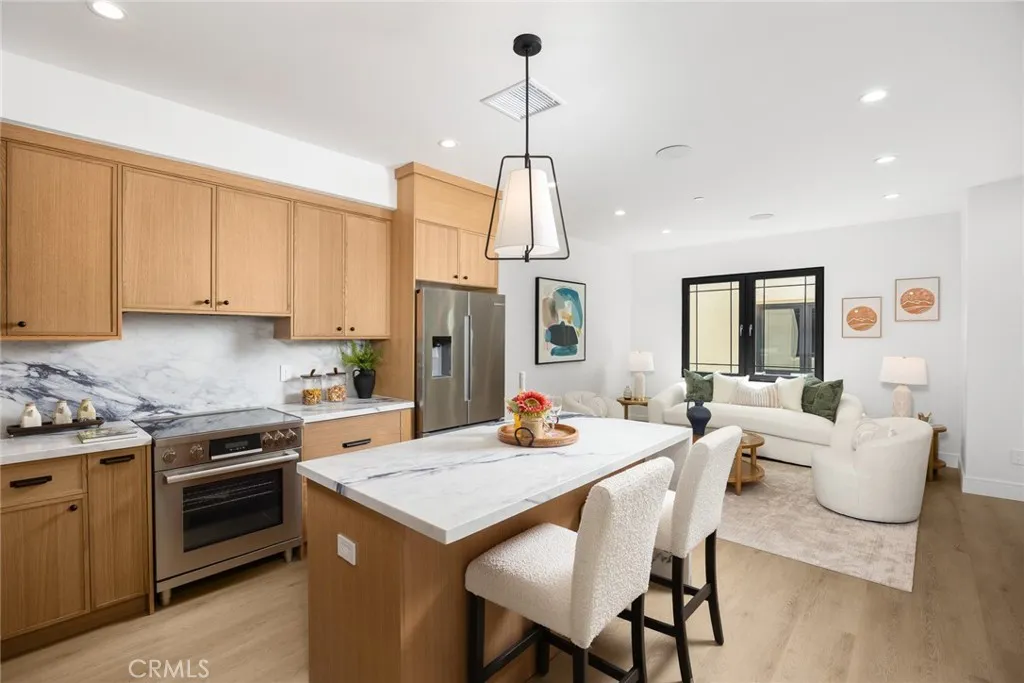 Stunning brand-new 8-unit luxury complex with modern design in the highly desirable Arcadia, located within the award-winning Arcadia Unified School District and developed by Rodeo Development. Conveniently situated near Westfield Santa Anita, Santa Anita Park, the Los Angeles County Arboretum and Botanic Garden, Santa Anita Golf Course, and USC Arcadia Hospital, with easy access to Interstate 210. This property features a 4-unit duplex-style building, with each residence shares only one wall and has three sides exposed to natural light, providing excellent brightness and cross-ventilation. Each unit offers approximately 1,660 sq. ft. of living space with 3 bedrooms and 3 bathrooms. The open and functional floor plan showcases European-style windows, luxury vinyl plank floors, and designer finishes throughout. The second level features a spacious great room, dining area, and a gourmet kitchen equipped with quartz countertops, Bosch appliances, and custom cabinetry, seamlessly connected for both everyday living and entertaining. One en-suite bedroom is also conveniently located on this level. The third level is dedicated to the primary suite, complete with a designer bathroom, along with an additional well-appointed en-suite bedroom.This all-electric home features a heat pump A/C system, electric water heater, stove, washer, and dryer (no gas service). Each unit includes a fully paid 6-panel solar system, a private outdoor space, and a dedicated laundry area. The attached 2-car garage is equipped with a Level 2 EV charger for each unit. Located near Hugo Reid Elementary Scho