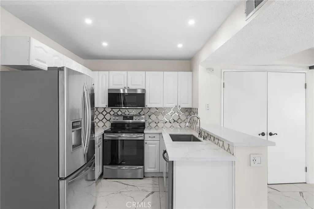 Welcome to this beautifully updated 2-bedroom, 1-bath condo located in the desirable gated Edgehill Village community of North San Bernardino. This turnkey, single-level home features fresh interior paint, upgraded lighting with modern control features, and thoughtfully designed custom closet systems. The remodeled kitchen shines with sleek quartz countertops, stylish backsplash, and stainless steel appliances, creating a clean and contemporary space. The open-concept layout flows seamlessly into the living and dining areas, highlighted by upgraded flooring and a warm accent beam that adds character and charm. Conveniently situated within the community, this unit is just a short distance to the pool, mailbox, trash and parking, offering both comfort and accessibility. Edgehill Village residents enjoy resort-style amenities including multiple pools and well-maintained grounds. Ideally located near Blair Park, Shandin Hills Golf Course, Cal State San Bernardino, and scenic hiking trails, with easy access to the 210 and 215 freeways for commuting. This is a fantastic opportunity to own a move-in-ready home in a peaceful, amenity-rich neighborhood.