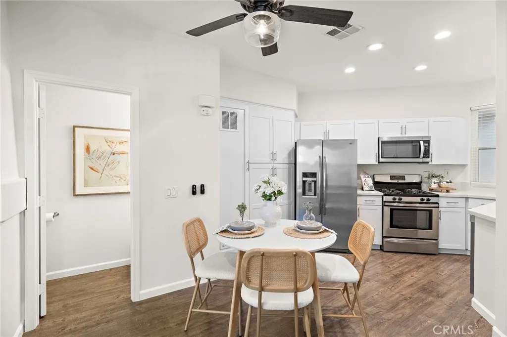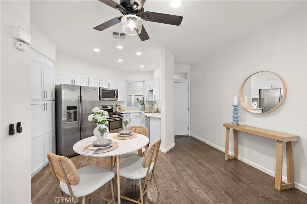 Beautifully updated 2-bedroom, 2.5-bath townhome offering a perfect blend of comfort and style. Freshly painted throughout, this home features a custom kitchen with upgraded countertops and cabinetry, ideal for both everyday living and entertaining. The spacious first floor provides an open, inviting layout with an expansive entertainment area and stylish custom flooring. Step outside to enjoy a private, enclosed backyardperfect for relaxing or hosting guests. A convenient powder room completes the main level. Upstairs, youll find brand-new carpet and fresh paint throughout, along with two generously sized bedroomseach featuring its own ensuite bathroom for added privacy and convenience. Move-in ready and thoughtfully updated, this home is a must-see!