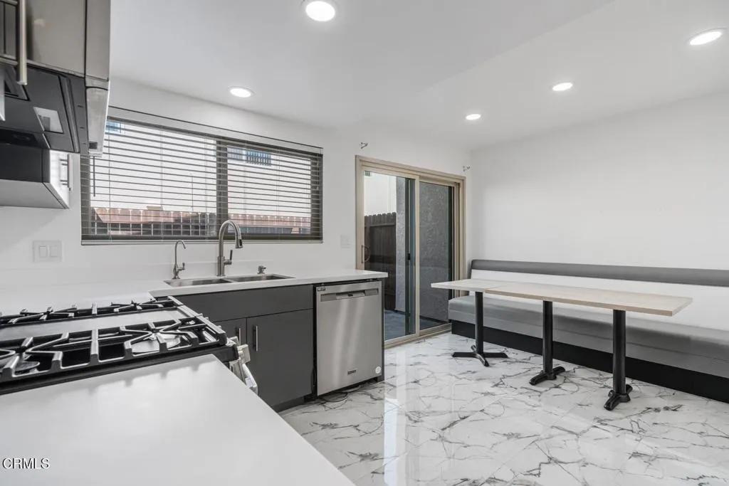 Welcome to your private coastal retreat at Mandalay Shores, where this beautifully remodeled beach condo combines modern design with effortless seaside living. Thoughtfully updated throughout, the home features gorgeous engineered wood-style flooring, designer tile in the kitchen and bathrooms, recessed lighting, and bright white interiors that create a fresh, airy ambiance. The stunning remodeled kitchen showcases custom cabinetry, sleek quartz countertops, and a full stainless steel appliance package, perfect for both everyday living and entertaining. The inviting living room centers around a cozy stone-surround fireplace, offering a warm and relaxing space to unwind after a day at the beach.Upstairs, two well-appointed bedrooms provide comfort and privacy, including a spacious primary suite with dual closets and a guest bedroom ideal for visitors or a home office. The beautifully remodeled bathrooms feature modern finishes, with the upstairs bath offering a seamless glass-enclosed shower, designer tile, and an expansive vanity. Both front and rear patios invite you to enjoy indoor-outdoor living, capturing ocean breezes and providing the perfect setting for relaxing, dining, or entertaining. A private rear yard adds even more space to gather and enjoy the coastal lifestyle.Ideally located on one of the most beautiful stretches of beach in Ventura County, Mandalay Shores offers breathtaking ocean and island views along with unforgettable sunsets that become part of your everyday life. Just above Channel Islands Harbor--the gateway to Channel Islands National Park--and per